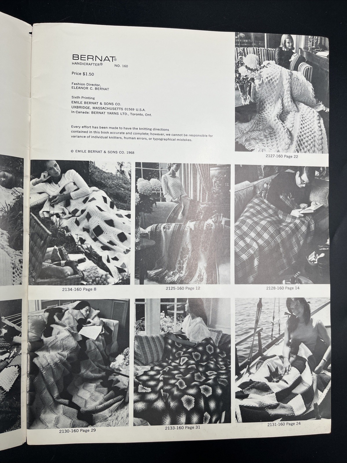Bernat Afghans to knit / crochet in Berella - 1968 Pattern book 160