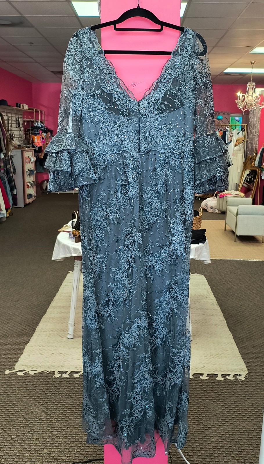 как выглядит Mother of Bride Dress with Scalloped V Front and Back Neckline Sz 10 Sequin Lace фото