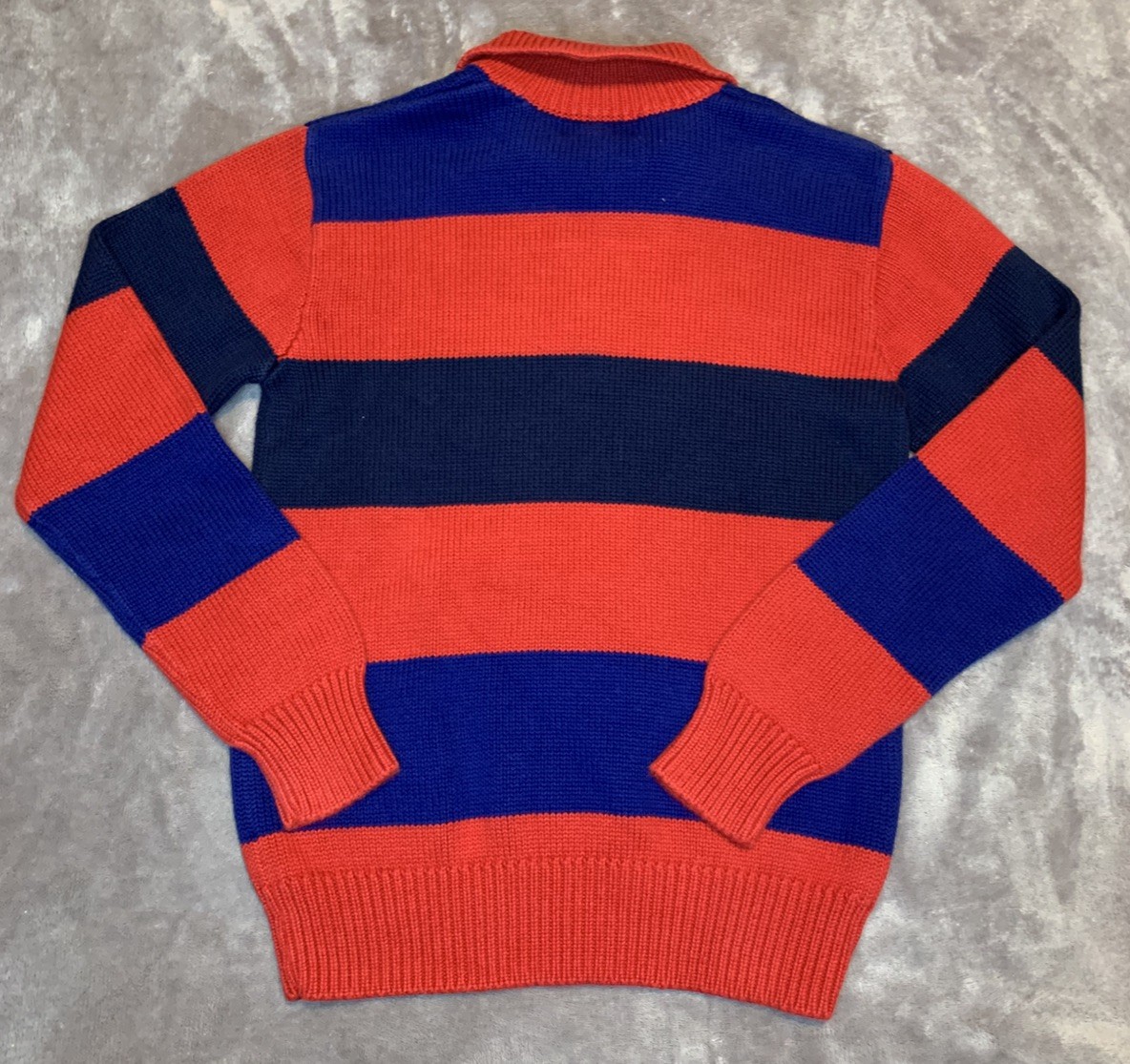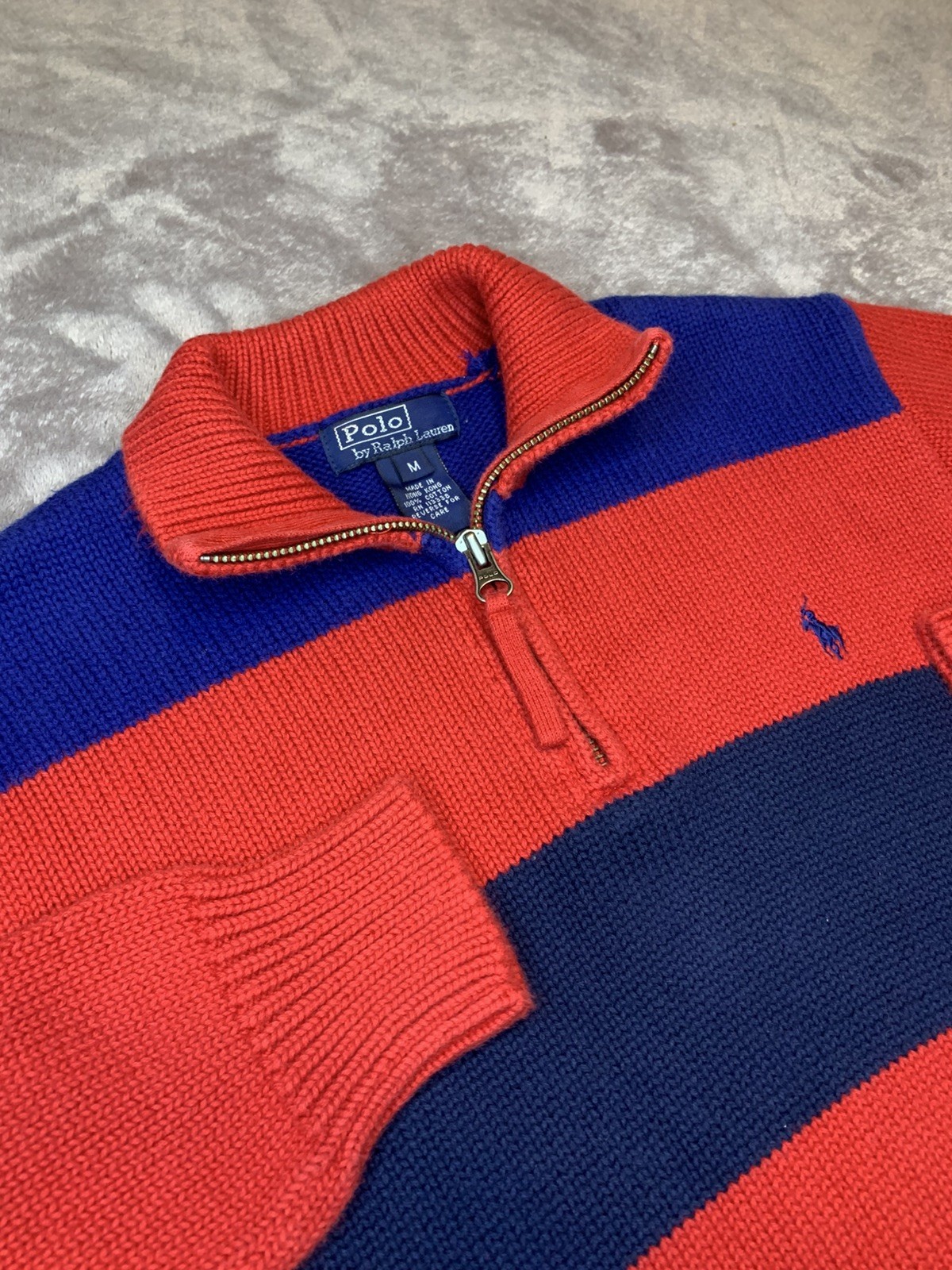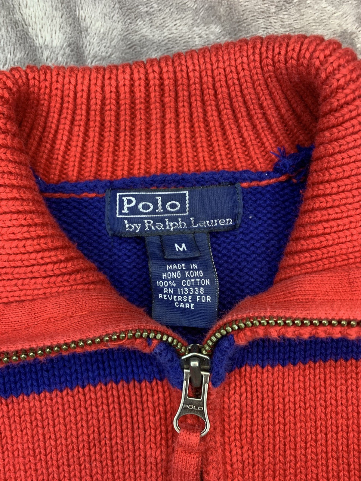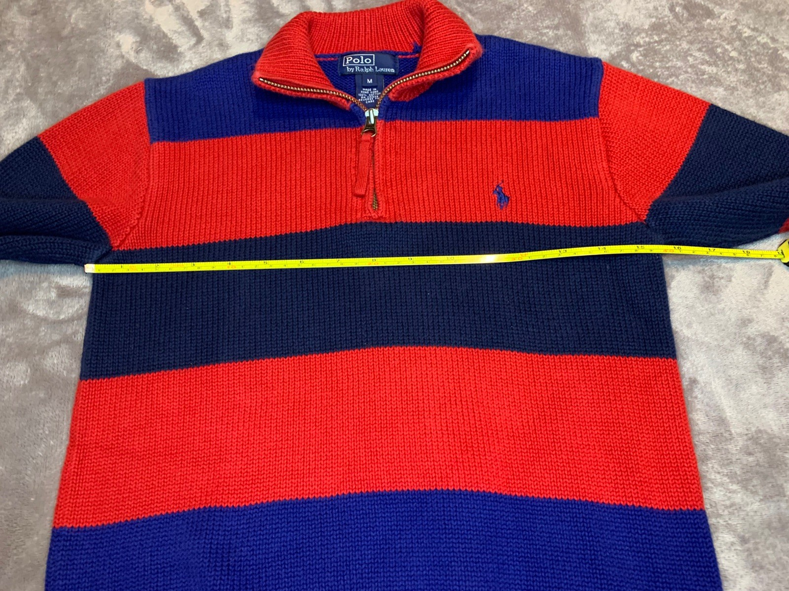 Polo Ralph Lauren Boys Sweater Size Youth M Knit 1/4 Zip Red Blue 100 Cotton