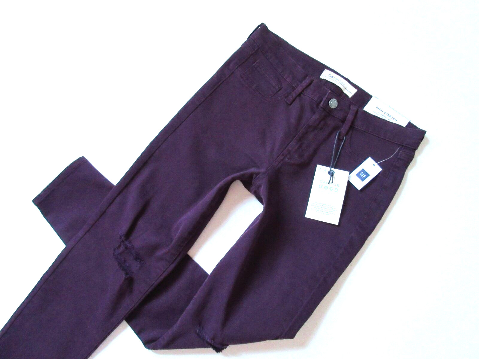NWT GAP 1969 Easy Legging in Rich Wine Destroyed Stretch Ankle Jegging Jeans 27