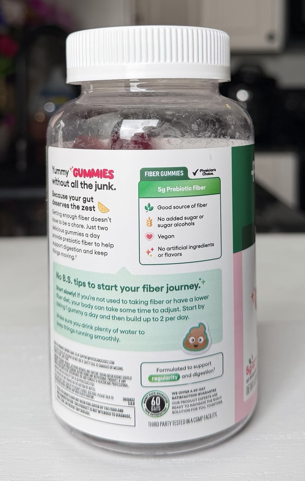 Physician s Choice Fiber Gummies for Digestive Health Regularity - Raspberr...