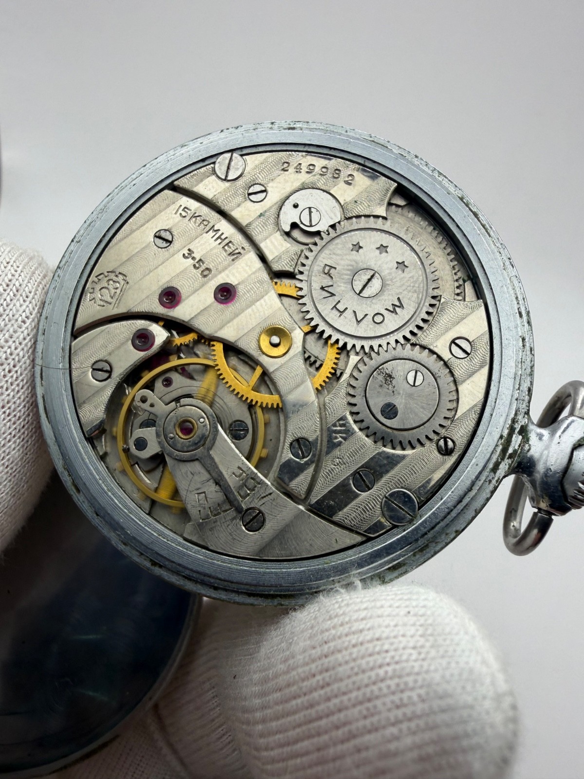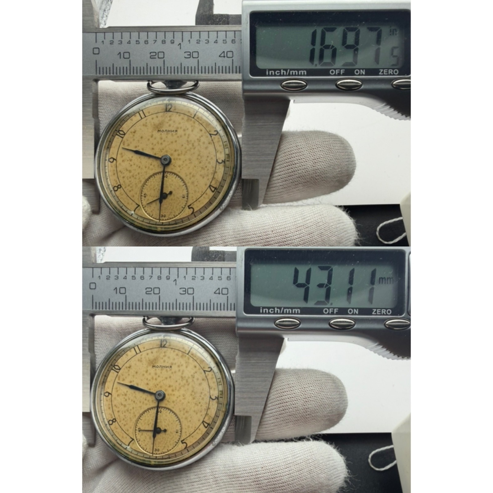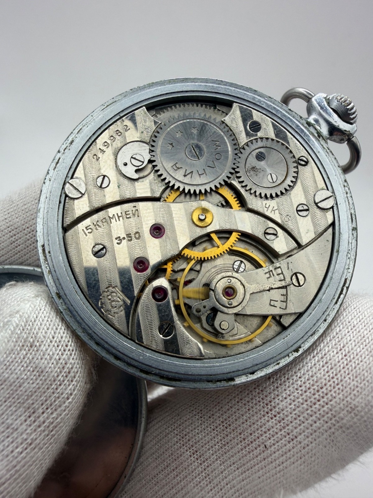как выглядит Vintage Molnija USSR Pocket Watch 3602 Mechanical 15 Jewels ChK-6 - 1950 year фото
