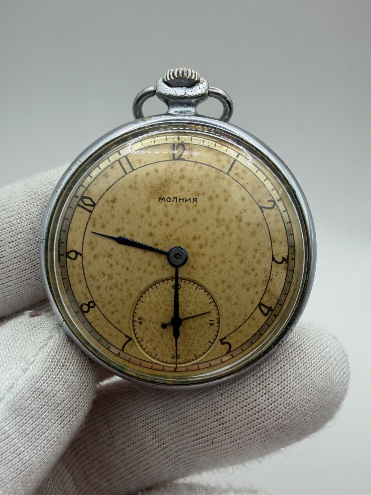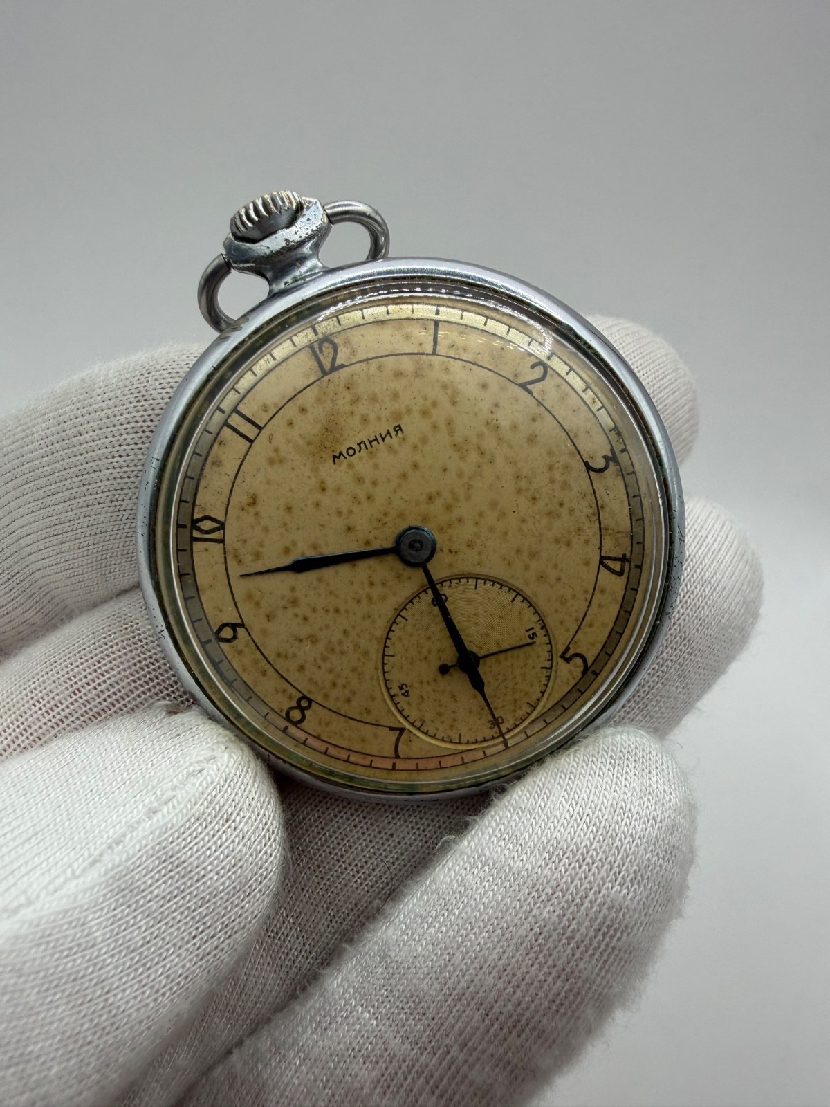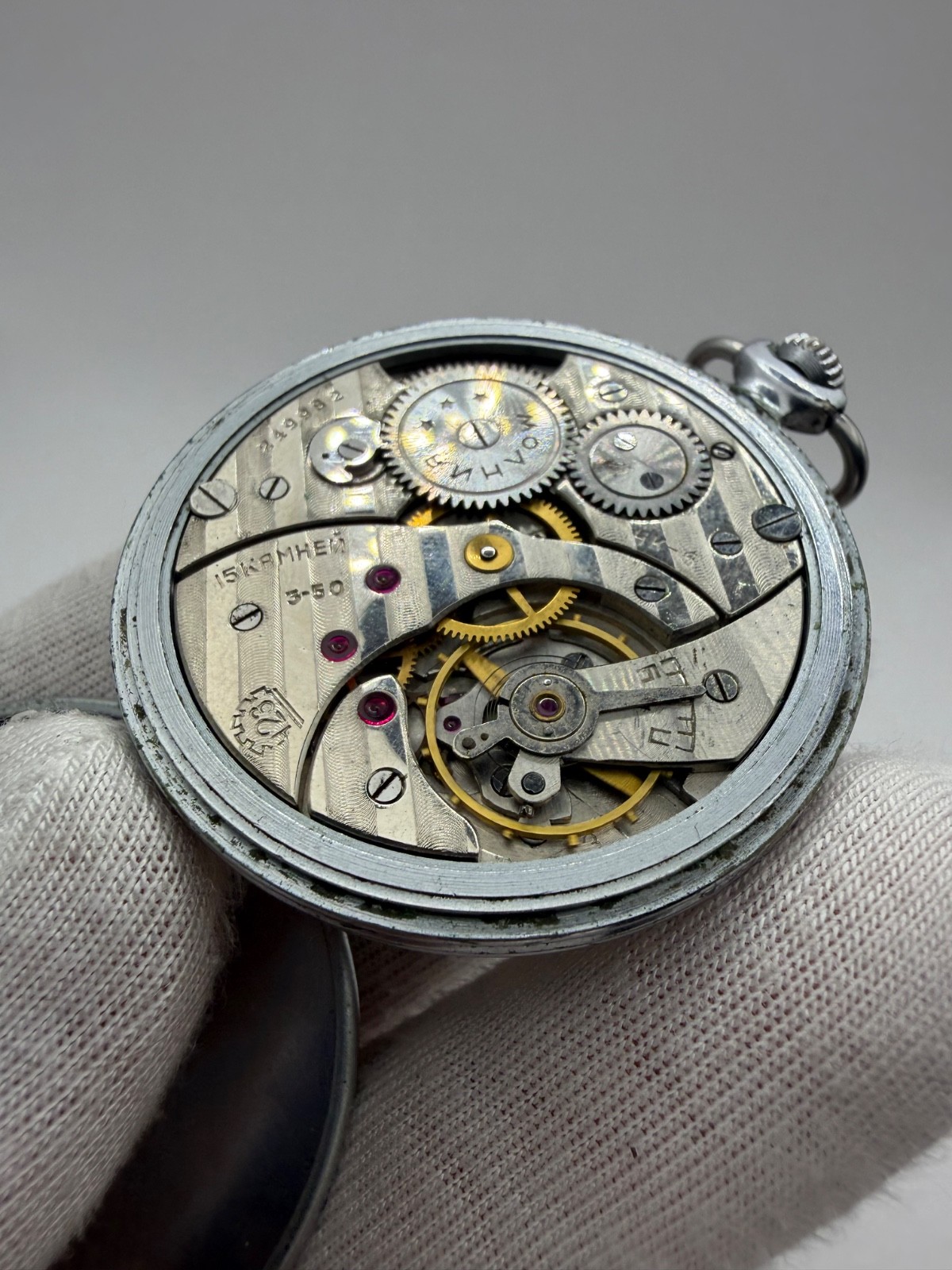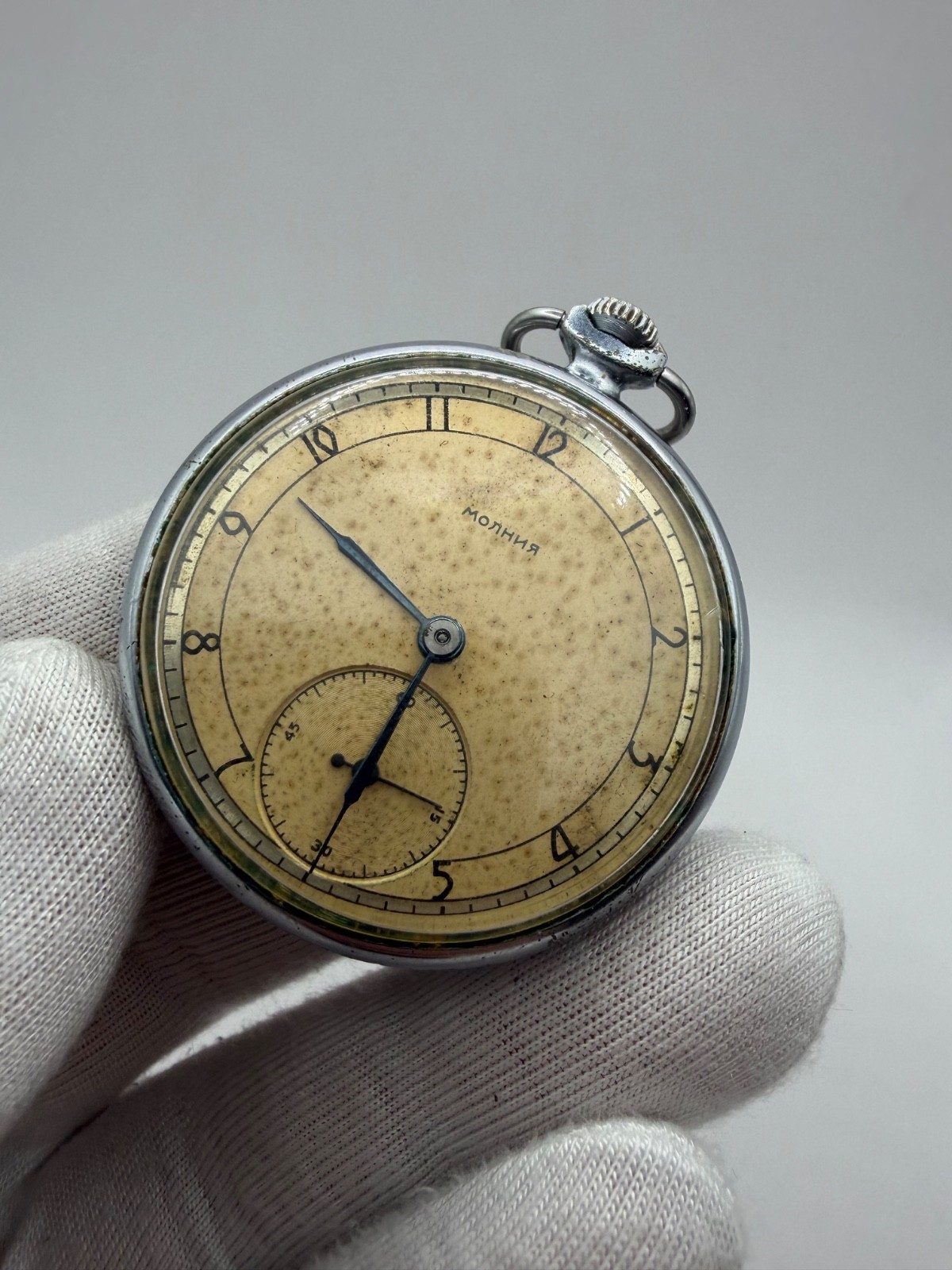 как выглядит Vintage Molnija USSR Pocket Watch 3602 Mechanical 15 Jewels ChK-6 - 1950 year фото