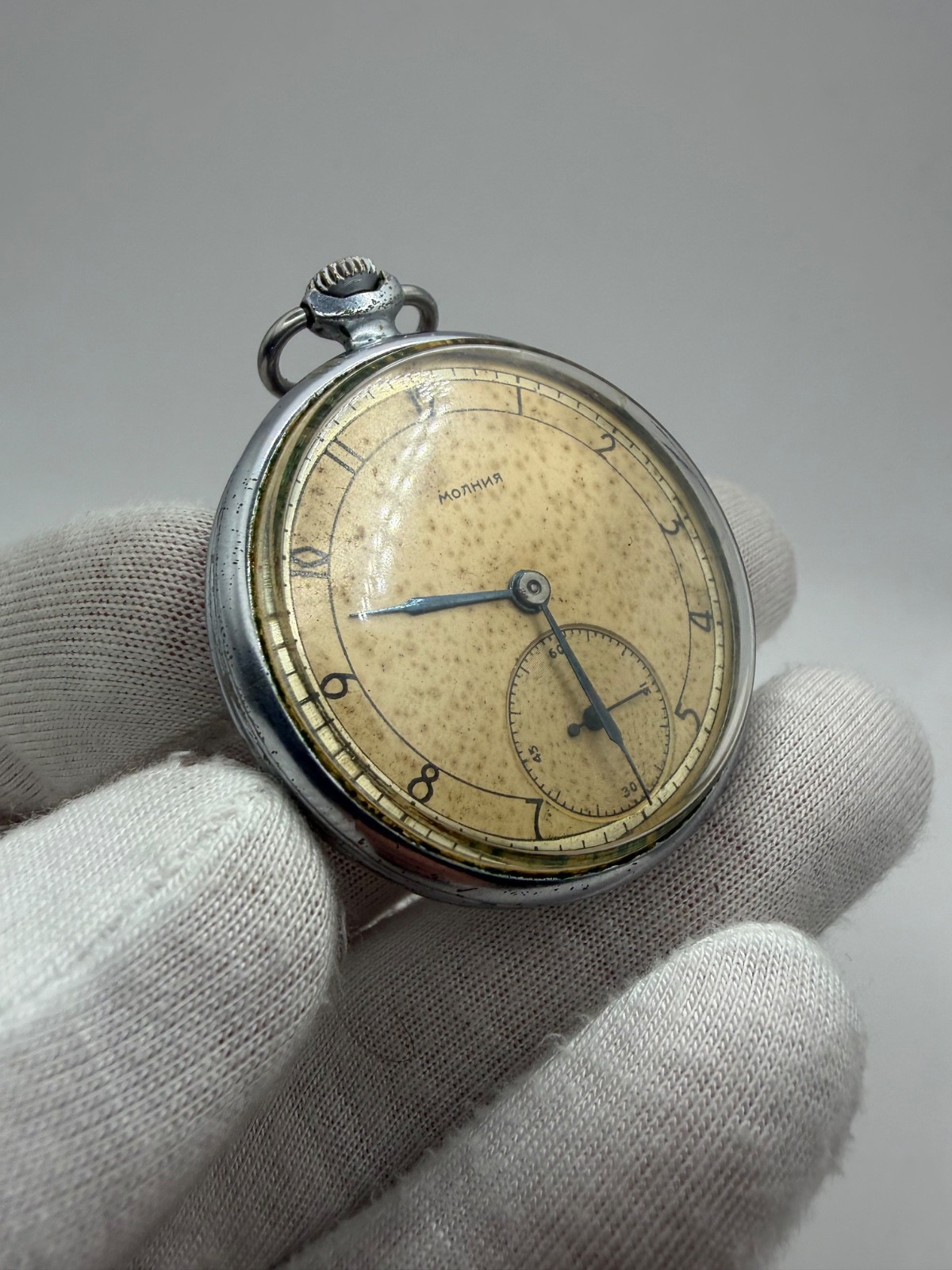 Vintage Molnija USSR Pocket Watch 3602 Mechanical 15 Jewels ChK-6 - 1950 year