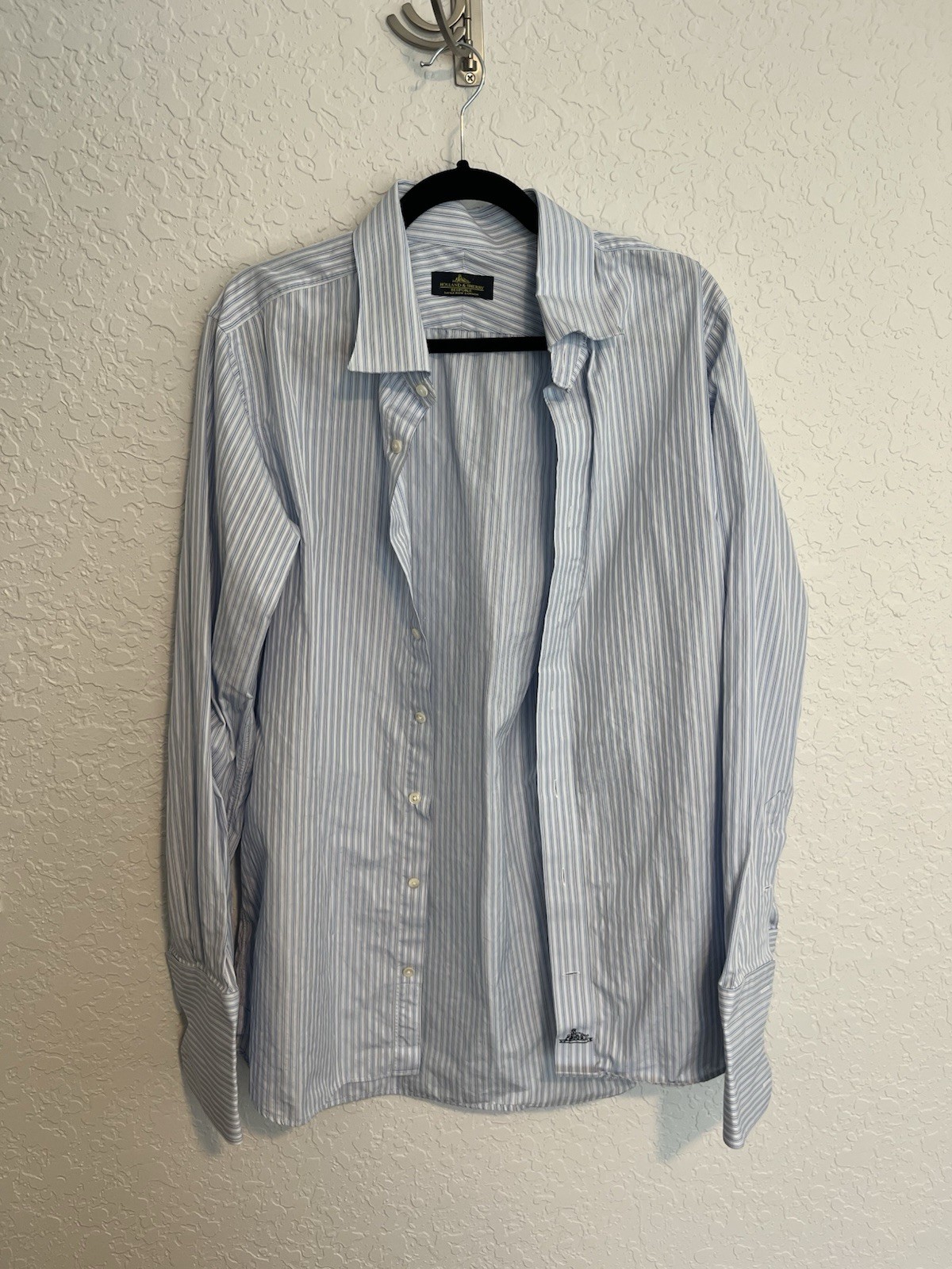 как выглядит Bespoke Holland Sherry Savile Row London Mens Dress Shirt White Custom Stripe фото