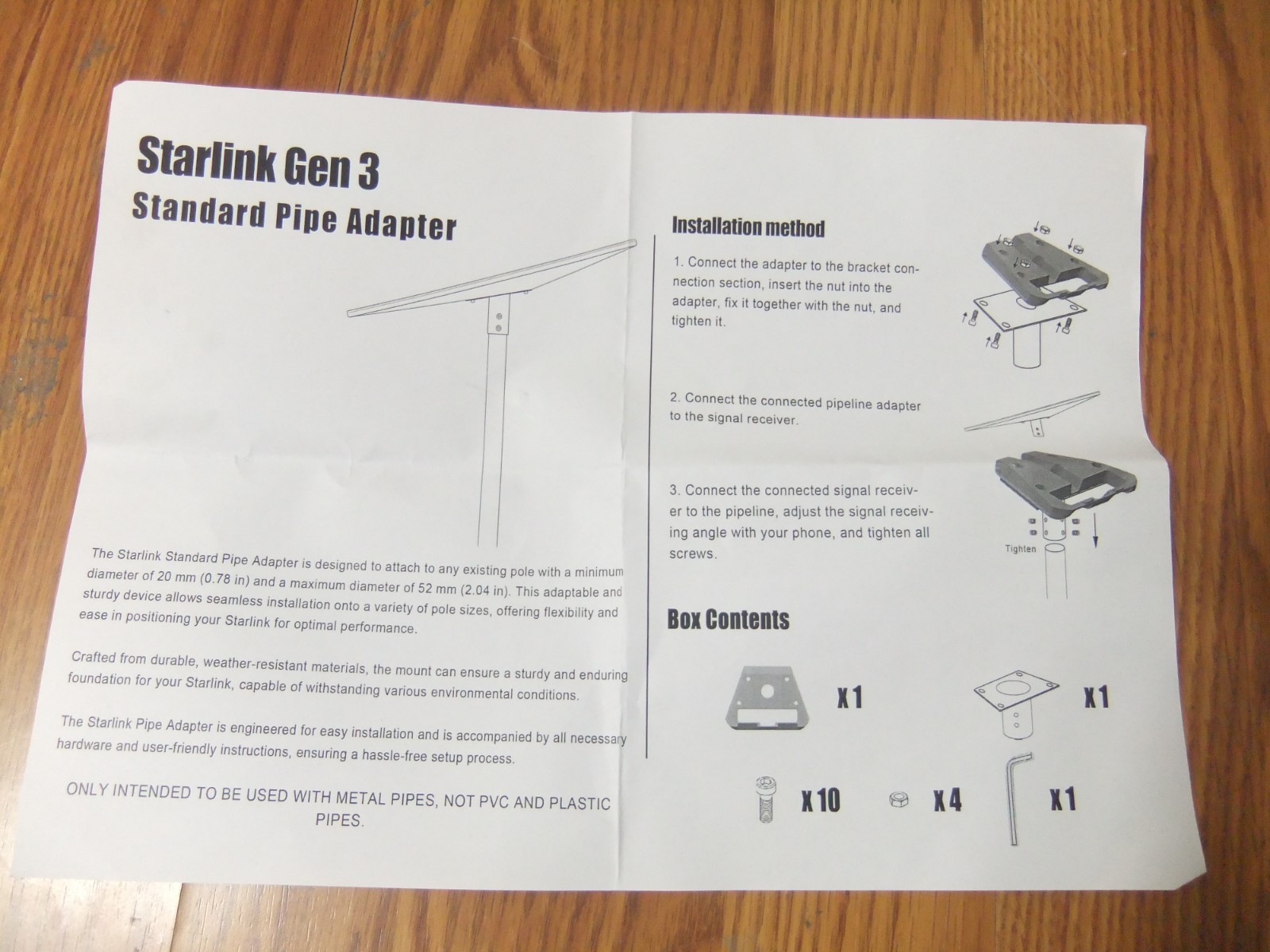 Set Name: Starlink Gen 3 Pipe Mount Adapter