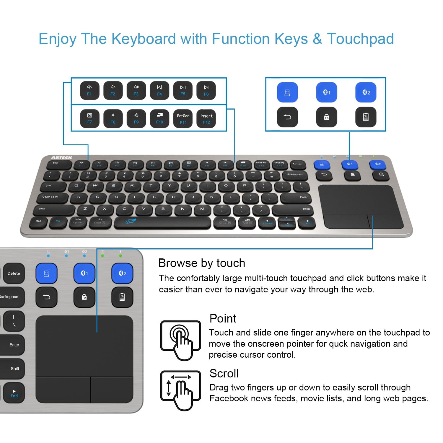 2.4G Wireless Bluetooth Touch TV Keyboard Touchpad Media Control MultiDevice