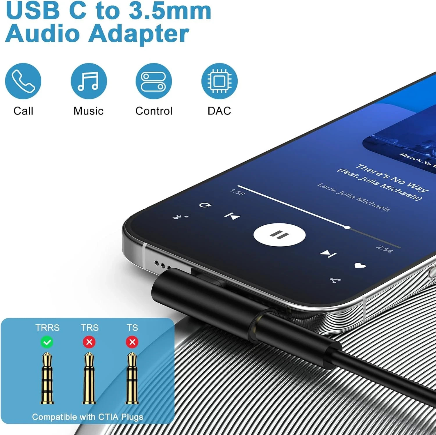 USB C to 3.5Mm Headphone Jack Adapter for Samsung Galaxy A16 A35 S25 Ultra...