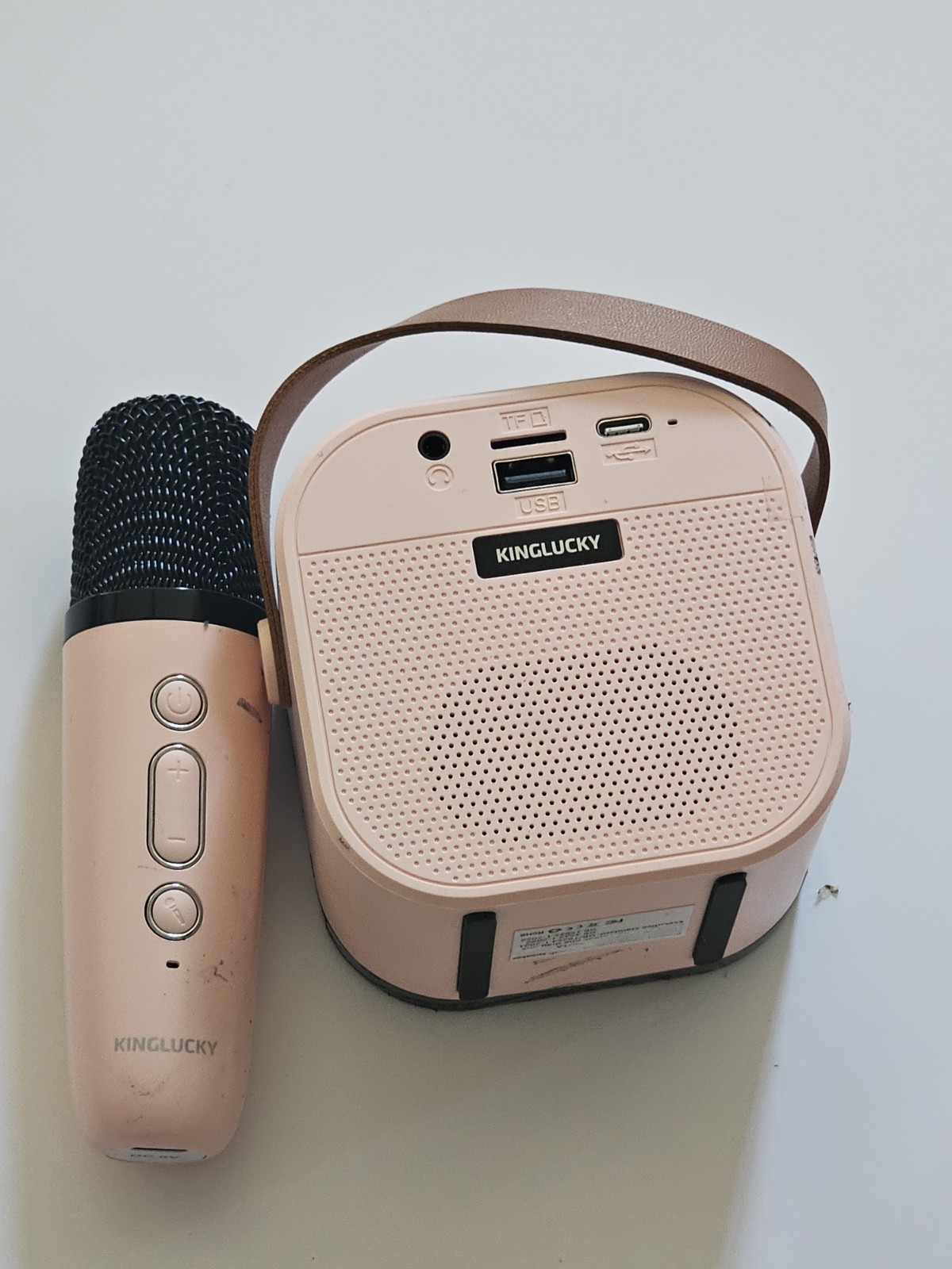 KINGLUCKY Portable Bluetooth Karaoke Speaker w Wireless Mic Pink USB TF AUX