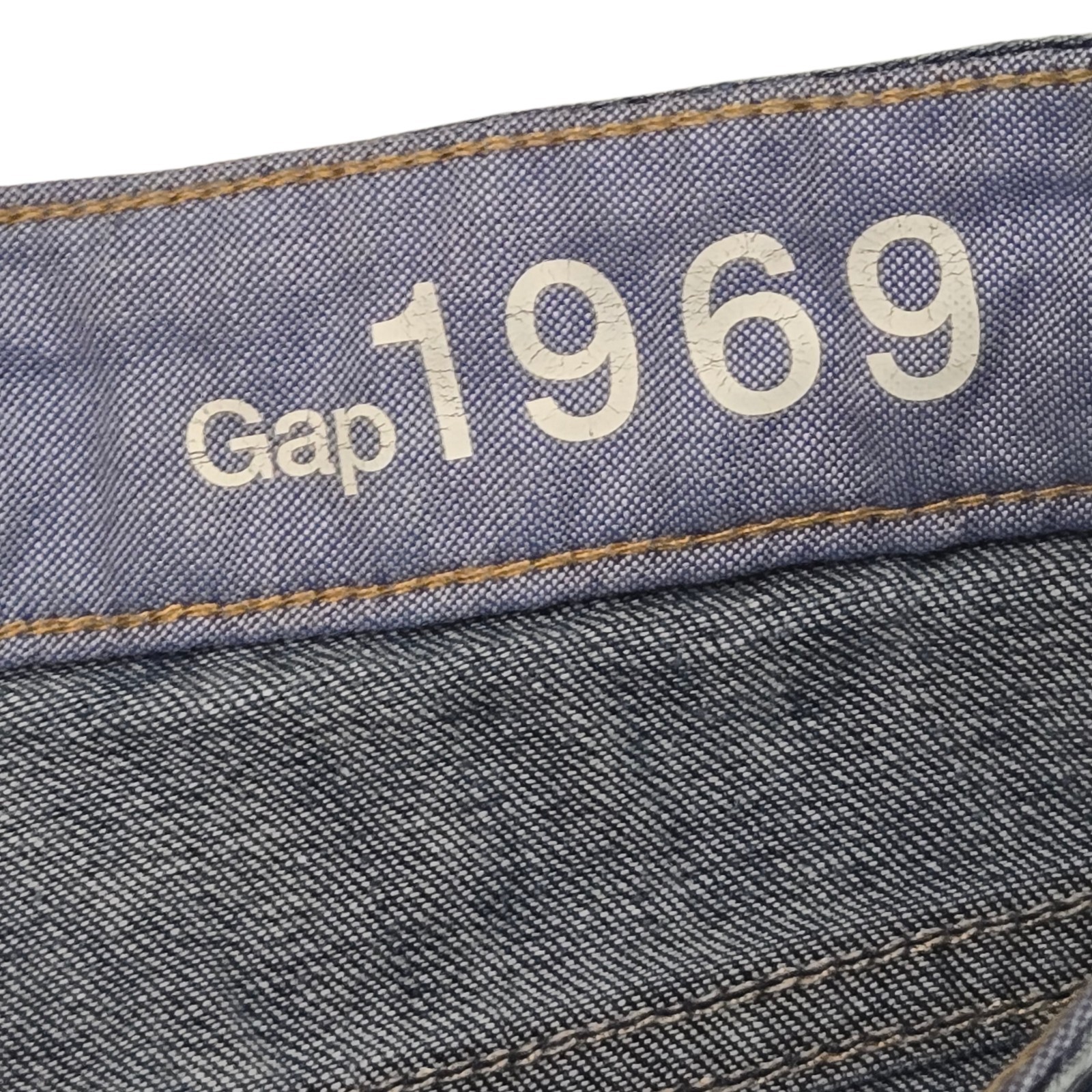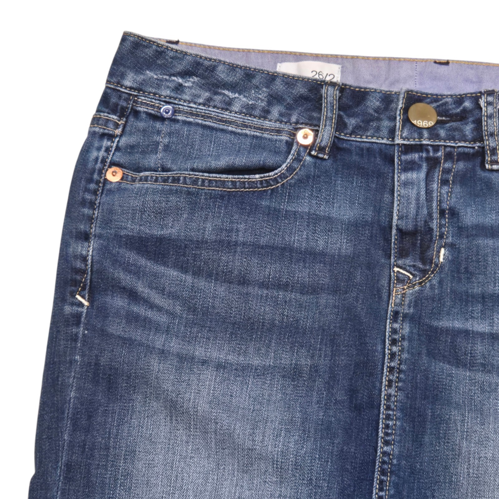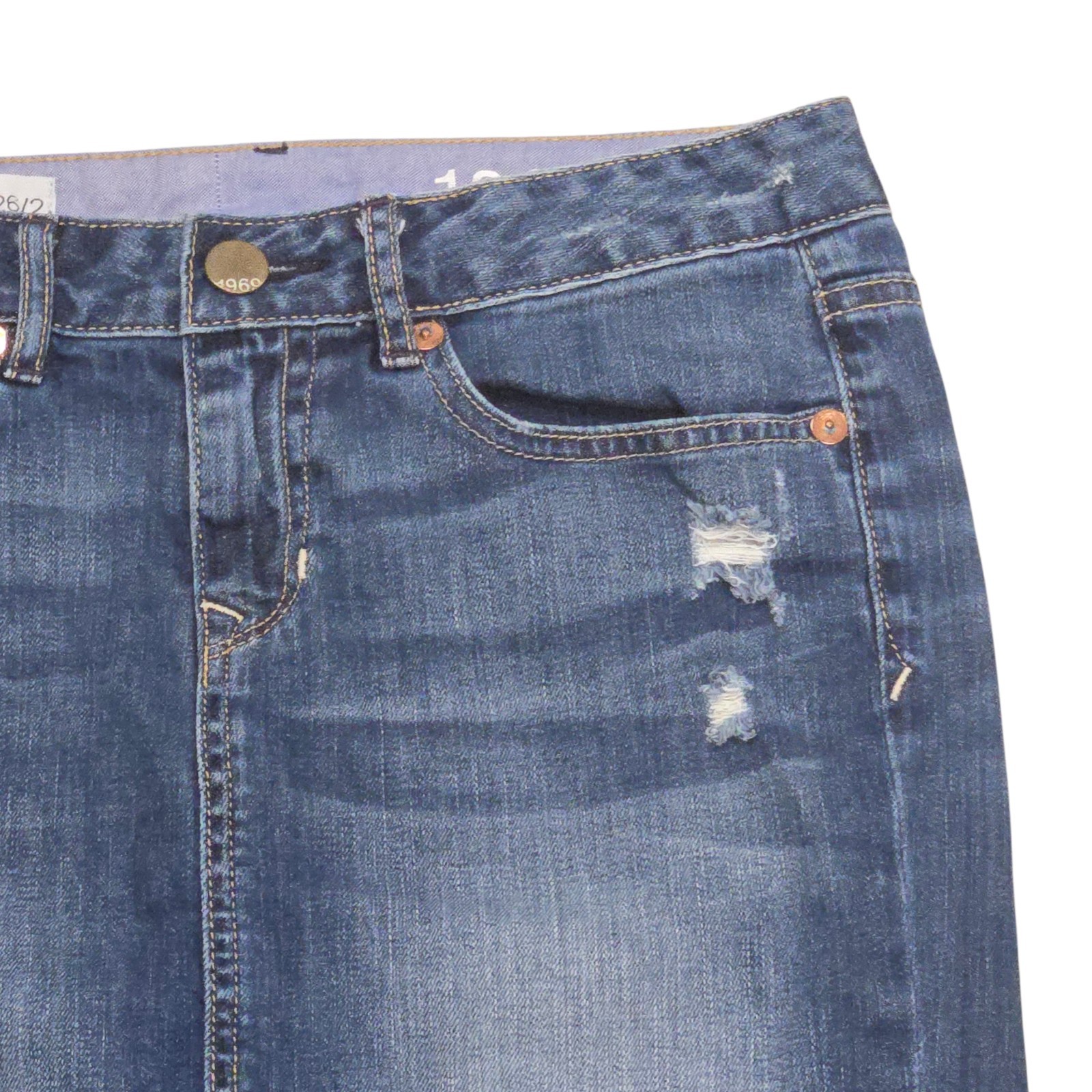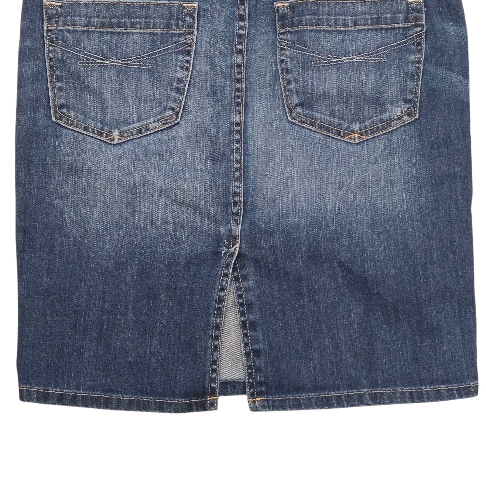 Vtg Y2K Gap 1969 Blue Jean Skirt Distressed Denim Size 26 Back Slit Above Knee