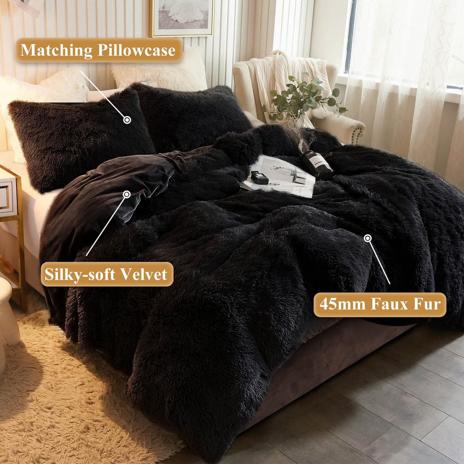 Plush Shaggy Duvet Cover Set, Luxury Ultra Soft Crystal Fluffy Bedding Sets 3...