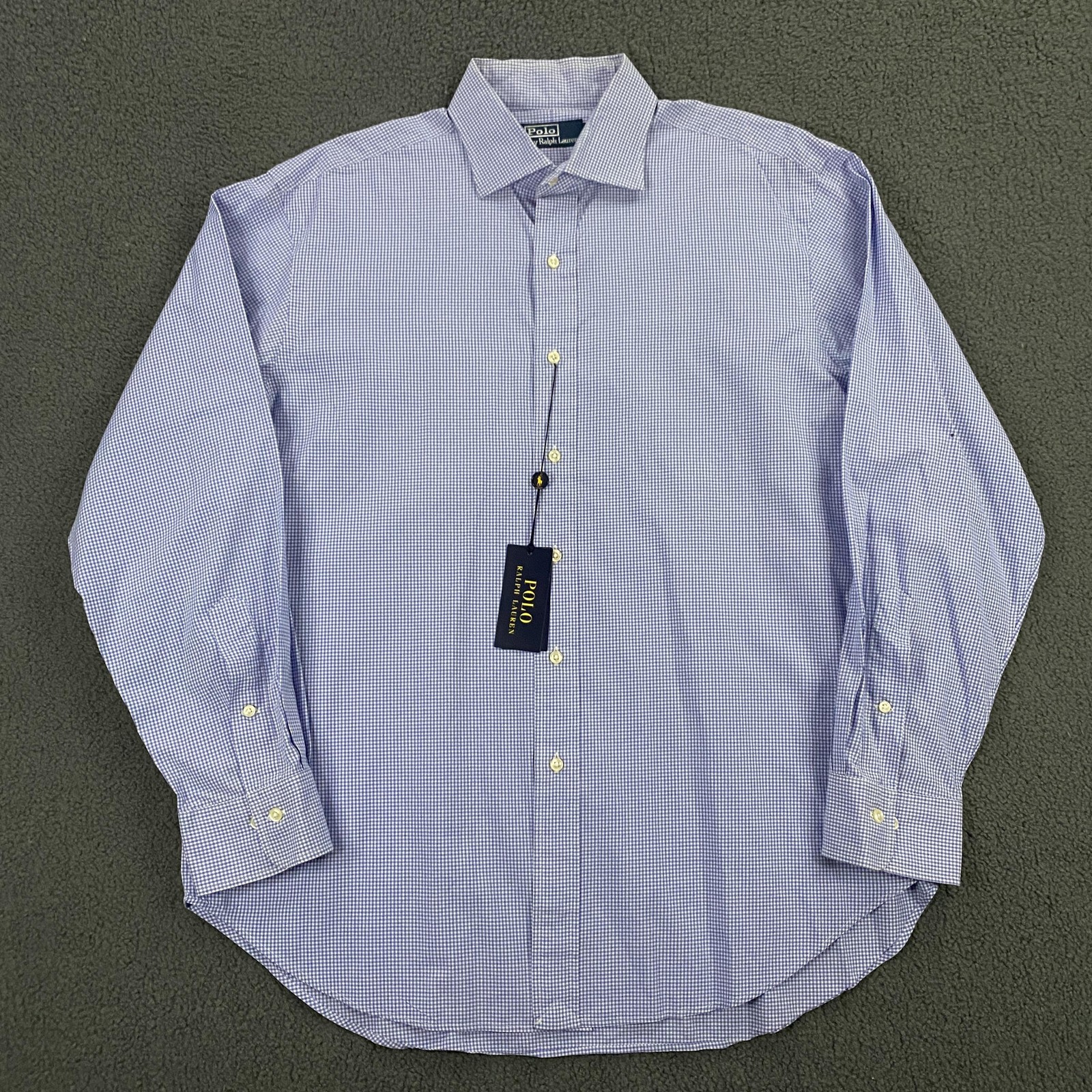 Polo Ralph Lauren Shirt Men 17 - 34/35 Gingham Check Dress Button Up Long Sleeve