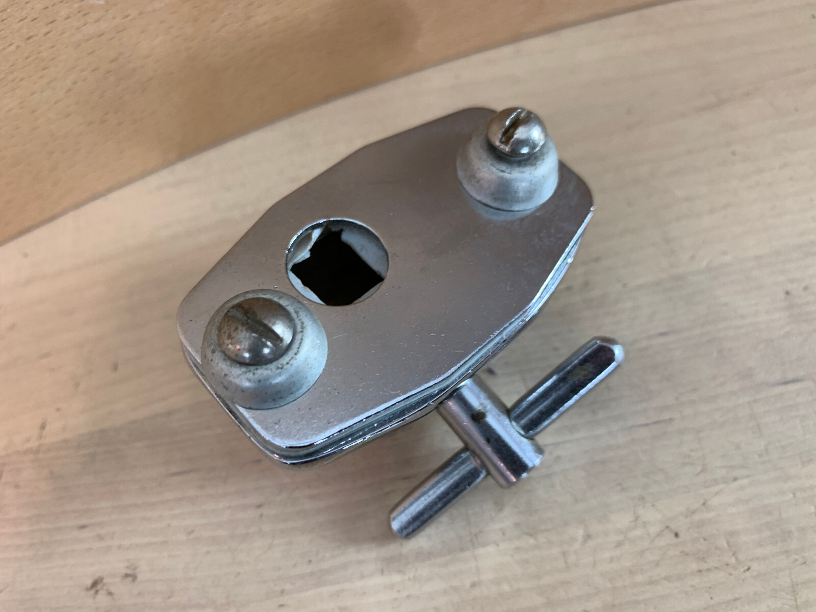 как выглядит LUDWIG 60s Vtg Small Curved Spur Bass Kick Drum Leg Bracket Holder Mount Part US фото