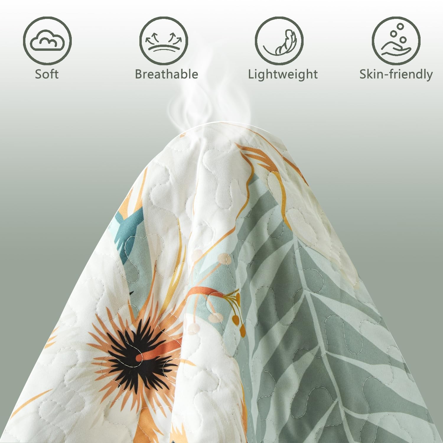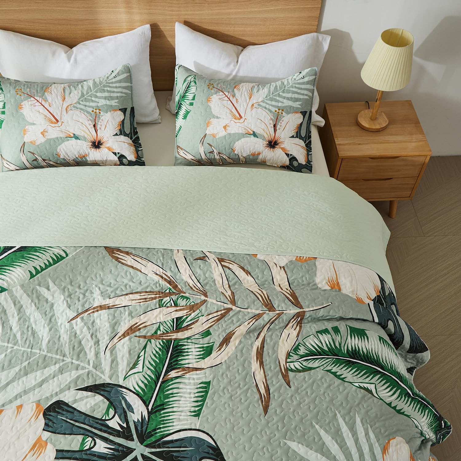 как выглядит Queen Quilt Bedding Set,White Botanical Pattern Sage Green Full/Queen Quilt S... фото