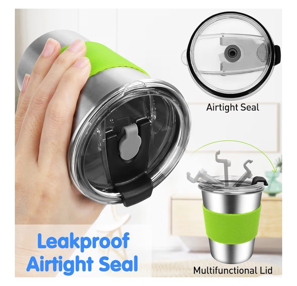 Stainless Steel Kids Cups, 5 Pack 12oz Leak Proof Kids Straw Cup Sippy Tumblers