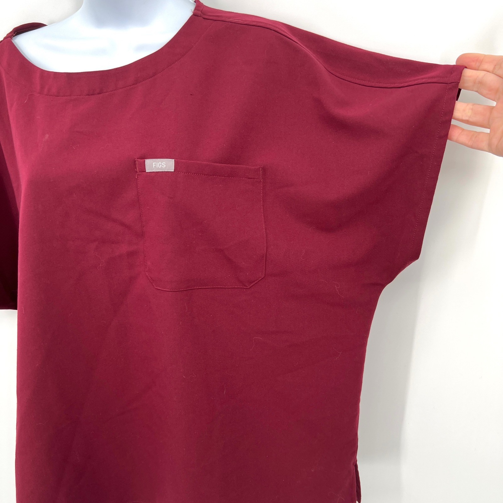 FIGS Arua Relaxed Scrub Top Burgundy Cranberry Red Size XL Nurse Doctor Hospital