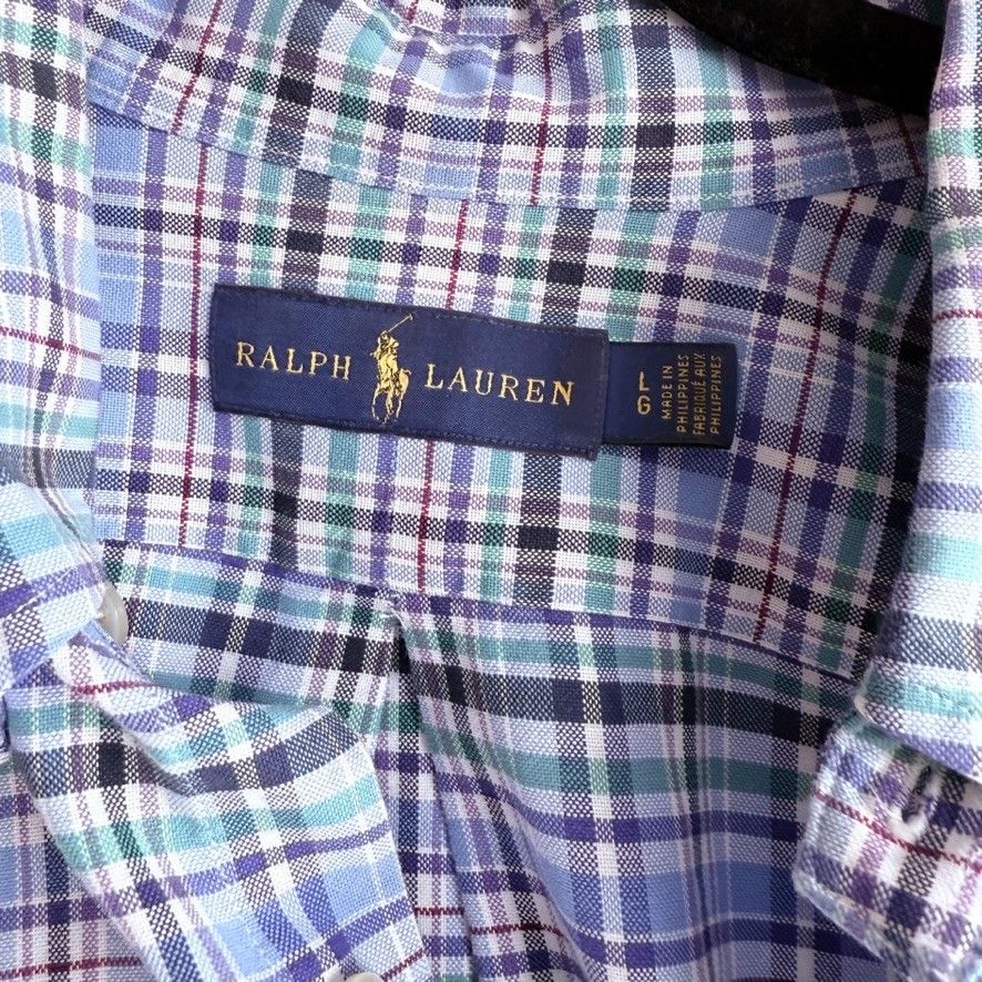 как выглядит Ralph Lauren Mens Plaid Long Sleeve Button Down Shirt Size Large Pony Logo фото
