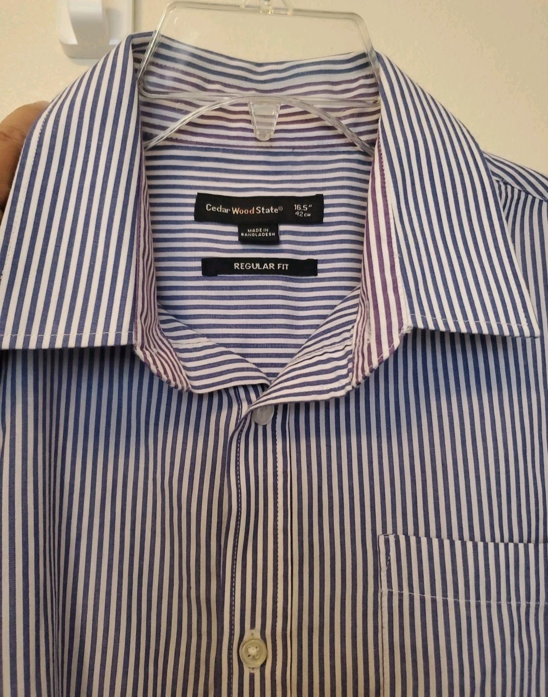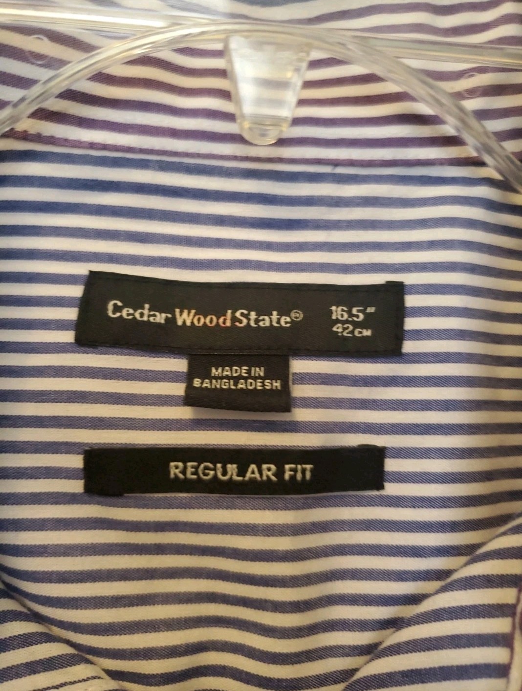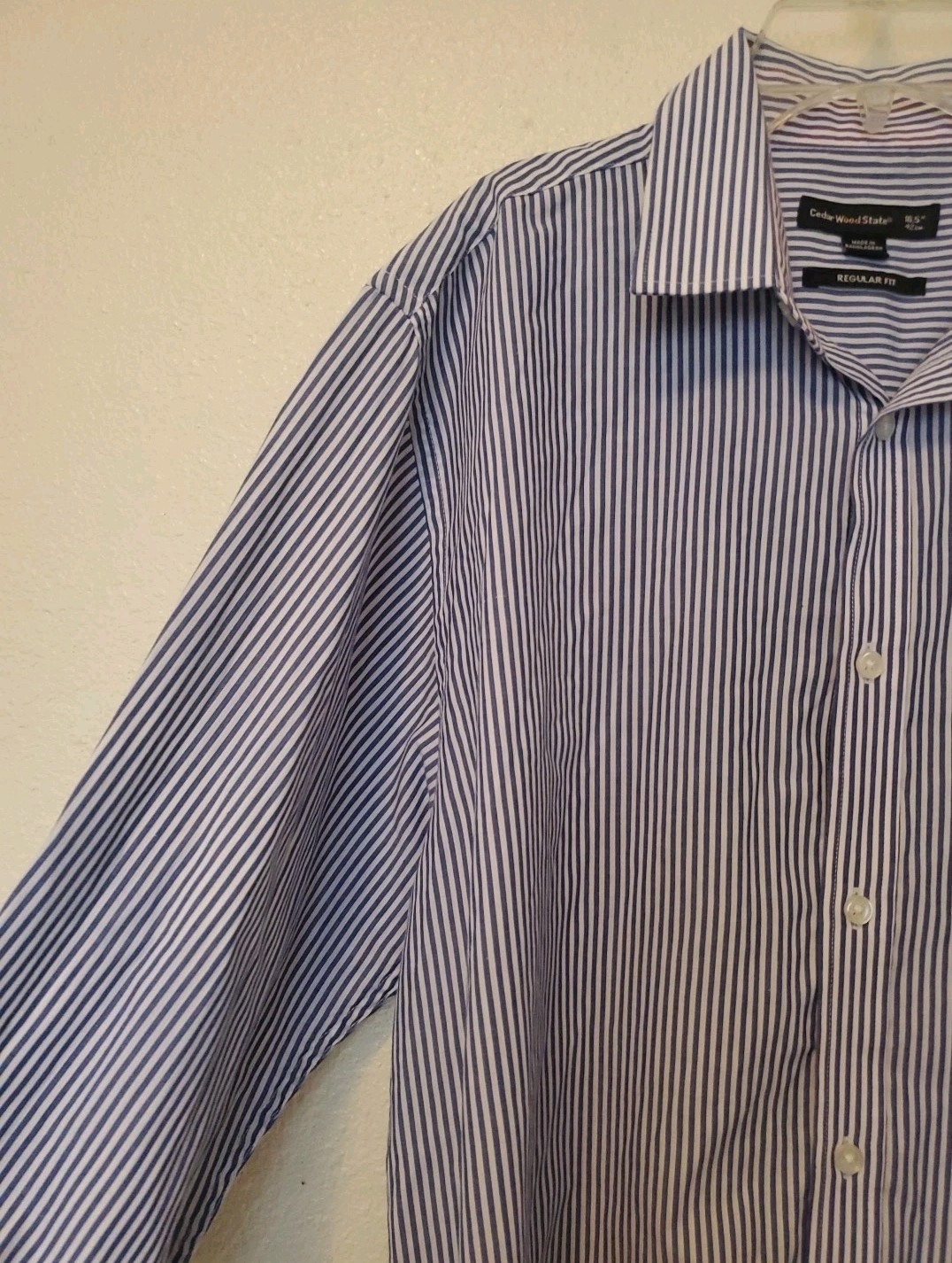 как выглядит Cedar Wood State Mens Regular Fit Striped Dress Shirt 16.5" Neck Blue White фото
