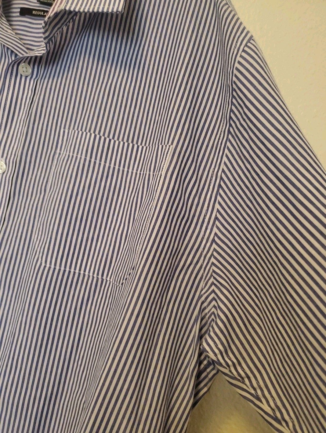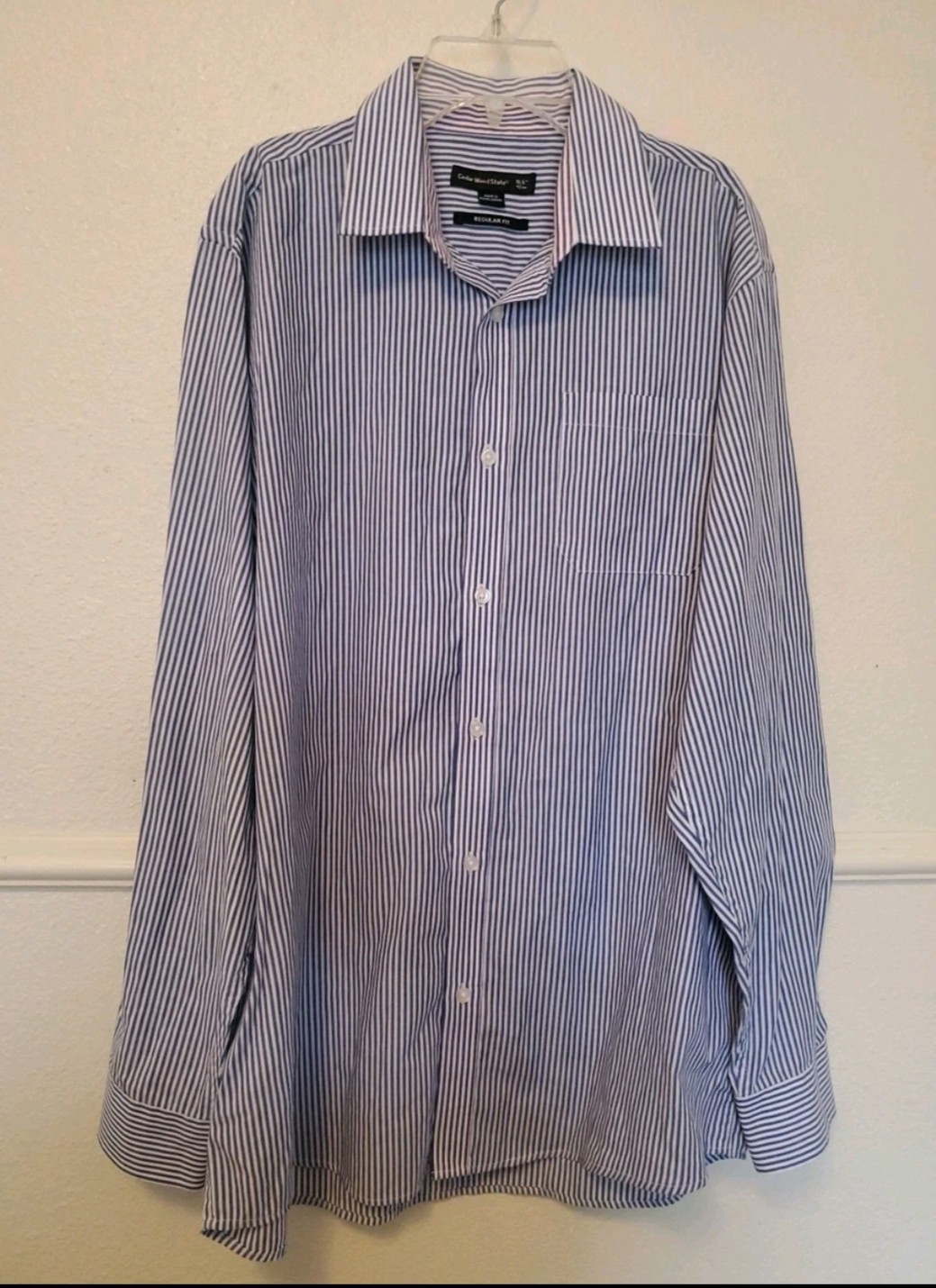 Cedar Wood State Men's Regular Fit Striped Dress Shirt 16.5 Neck Blue White