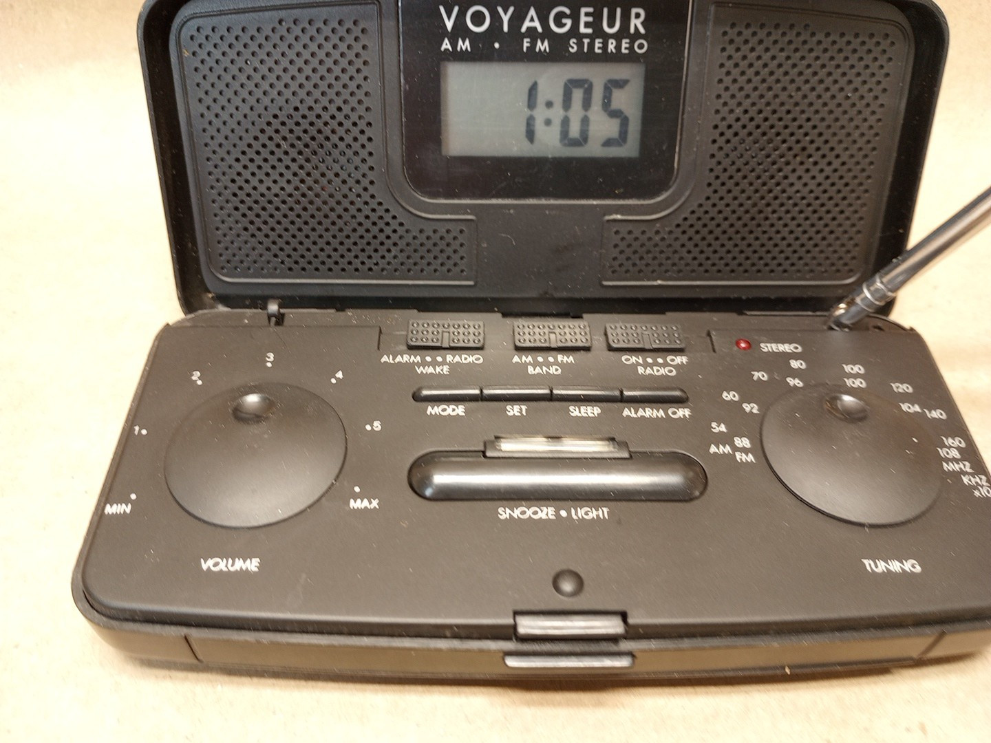 Voyageur AM Fm Radio Stereo Travel Alarm Clock Folding Pocket Vintage Design 20