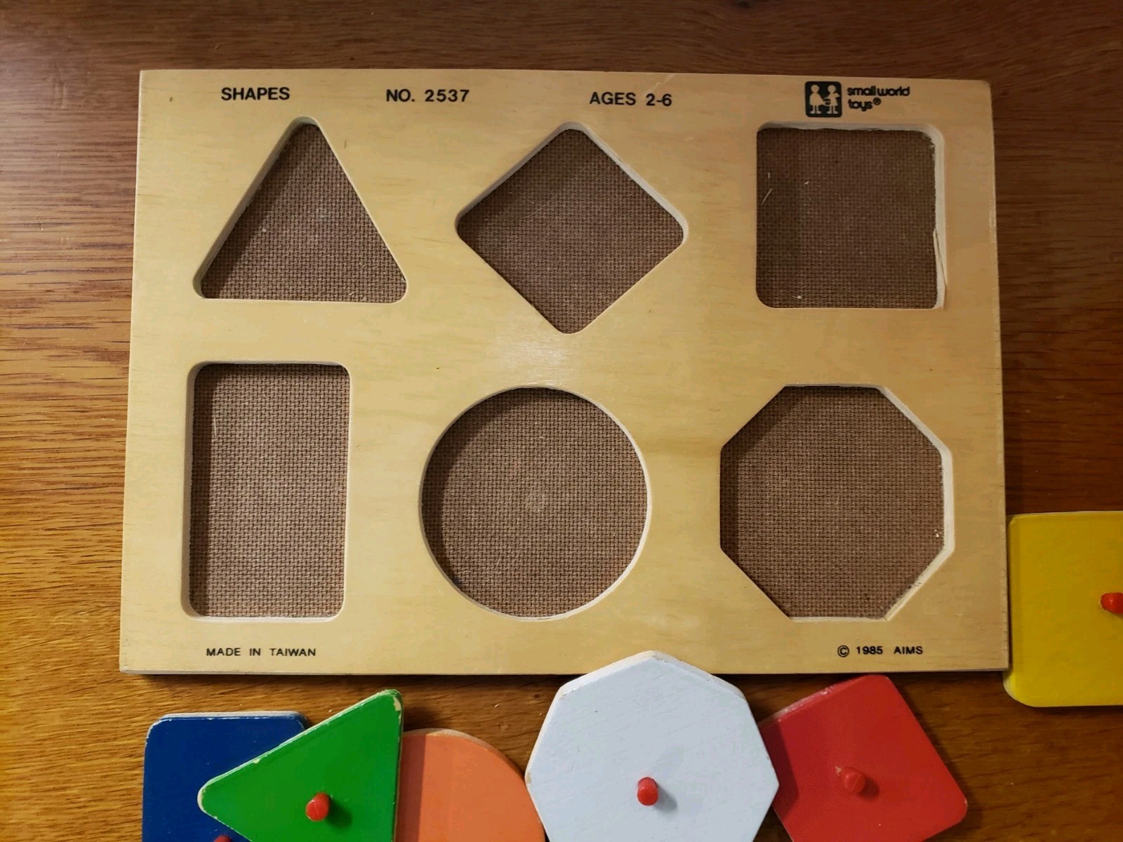 как выглядит Vintage 1985 Childs Colorful Wooden Shapes Learning Puzzle by Small World Toys фото