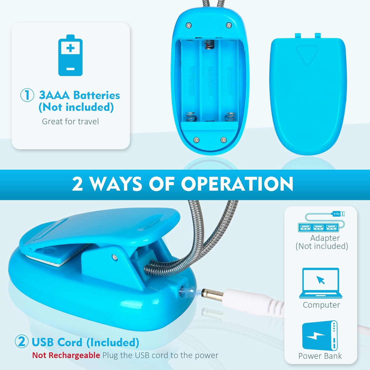 • TEECOO Music Stand Light, Clip on LED Book Lights, USB and AAA Battery Operated,
