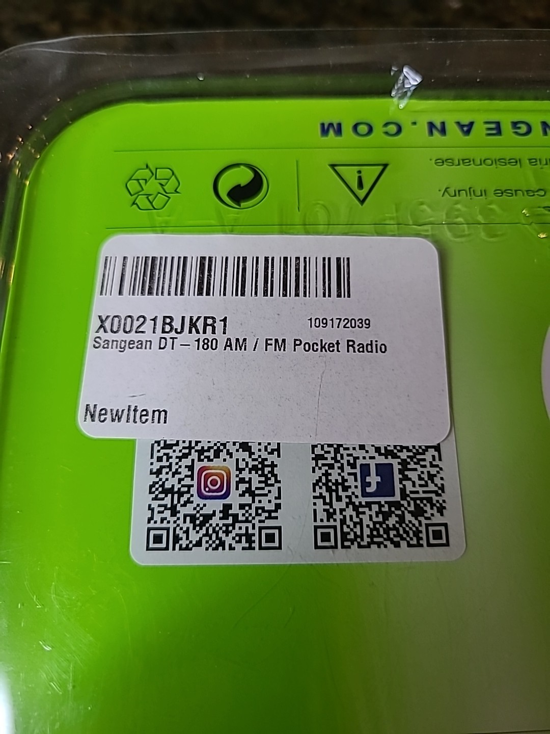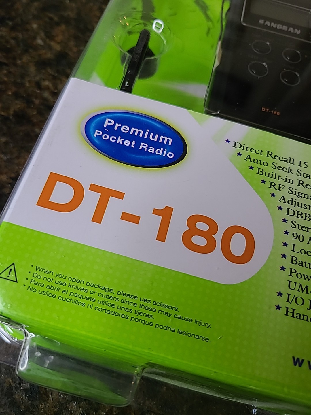 SANGEAN DT-180 PORTABLE AM/FM POCKET DIGITAL CLOCK RADIO BLACK NEW