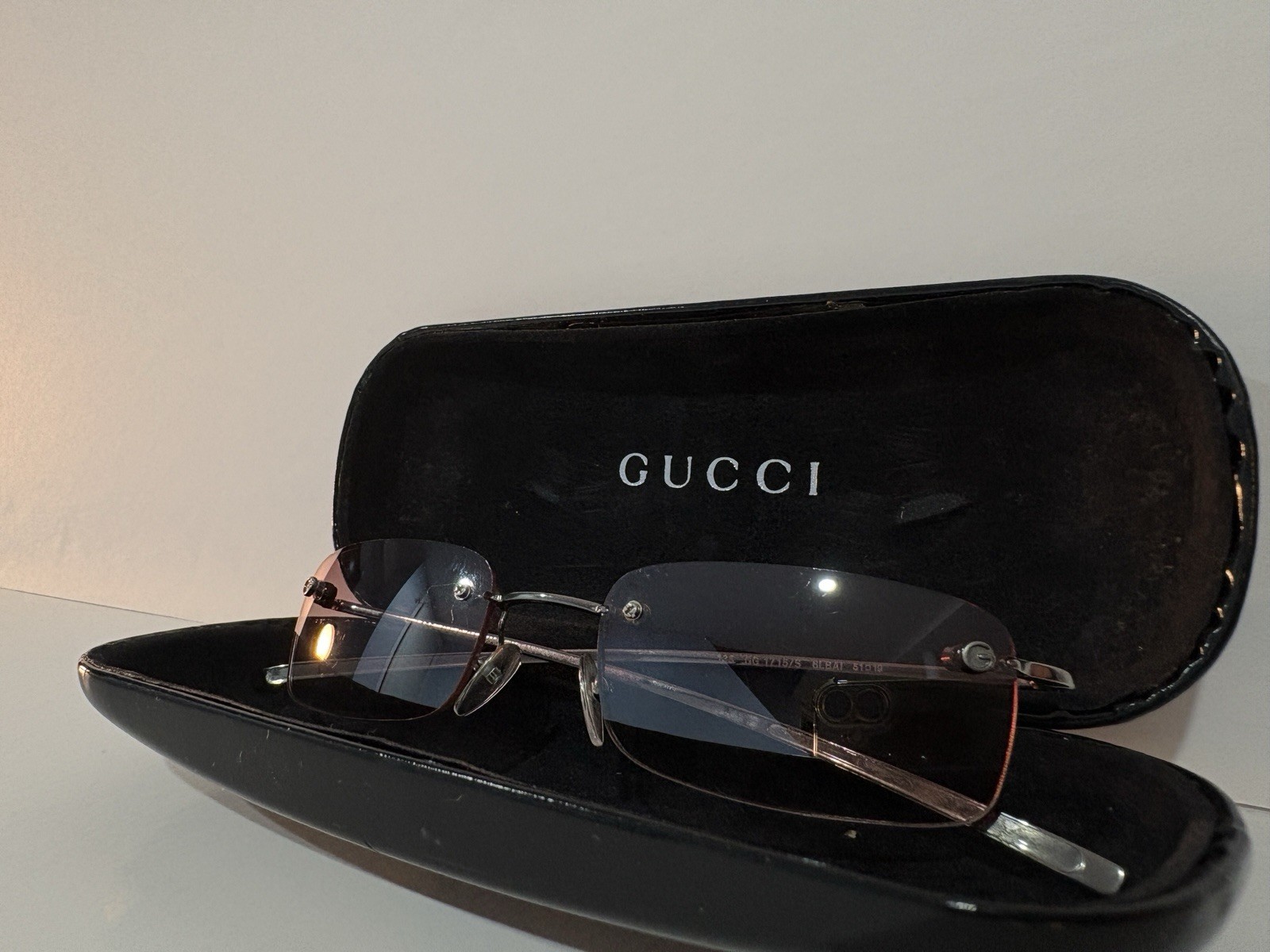 как выглядит NOS Gucci GG 1715/S 135 Sunglasses - Silver Rimless Y2K Vintage Italy - w/ Case фото
