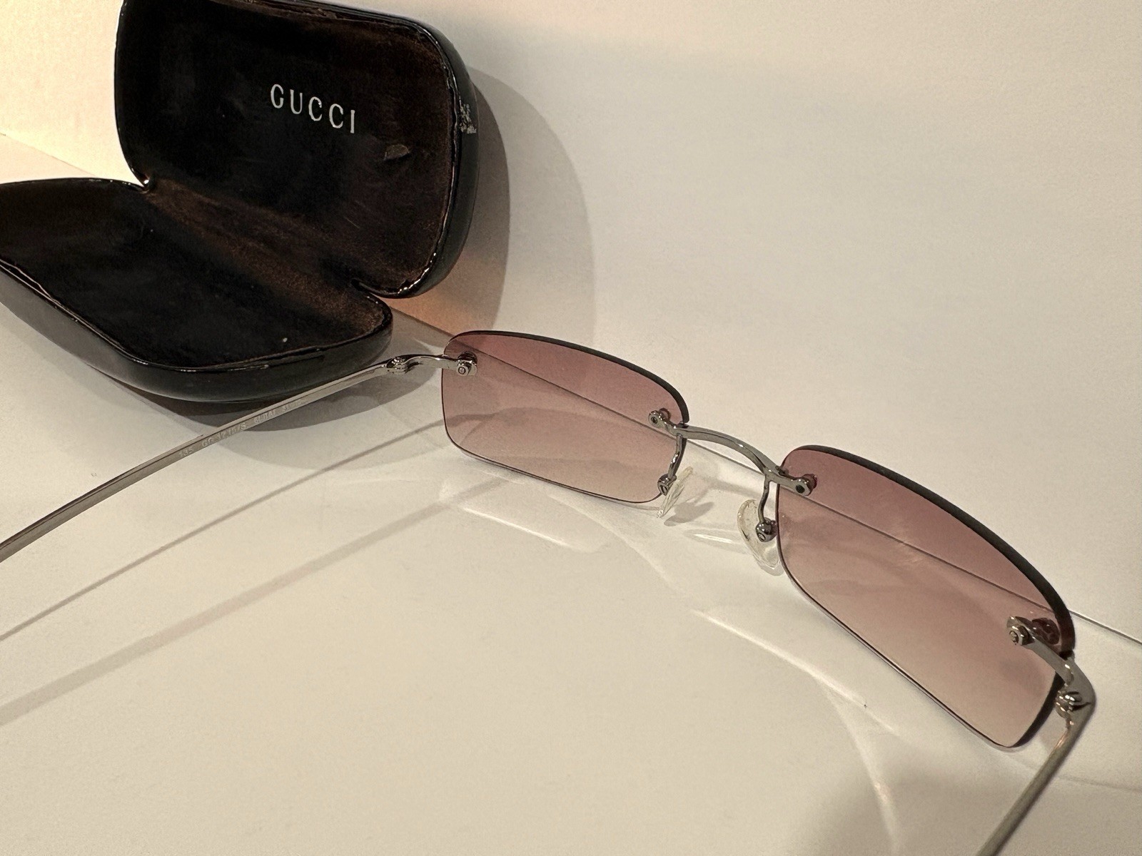 NOS Gucci GG 1715/S 135 Sunglasses - Silver Rimless Y2K Vintage Italy - w/ Case