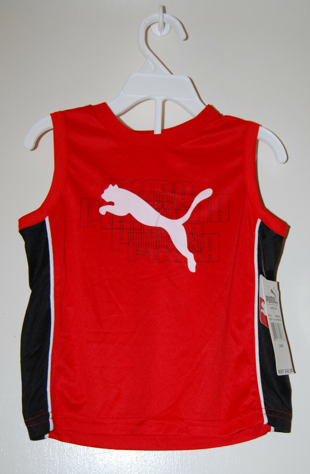 NWT PUMA Infant Boys Red Black 2pc Sleeveless T-Shirt Short Set sz 24M