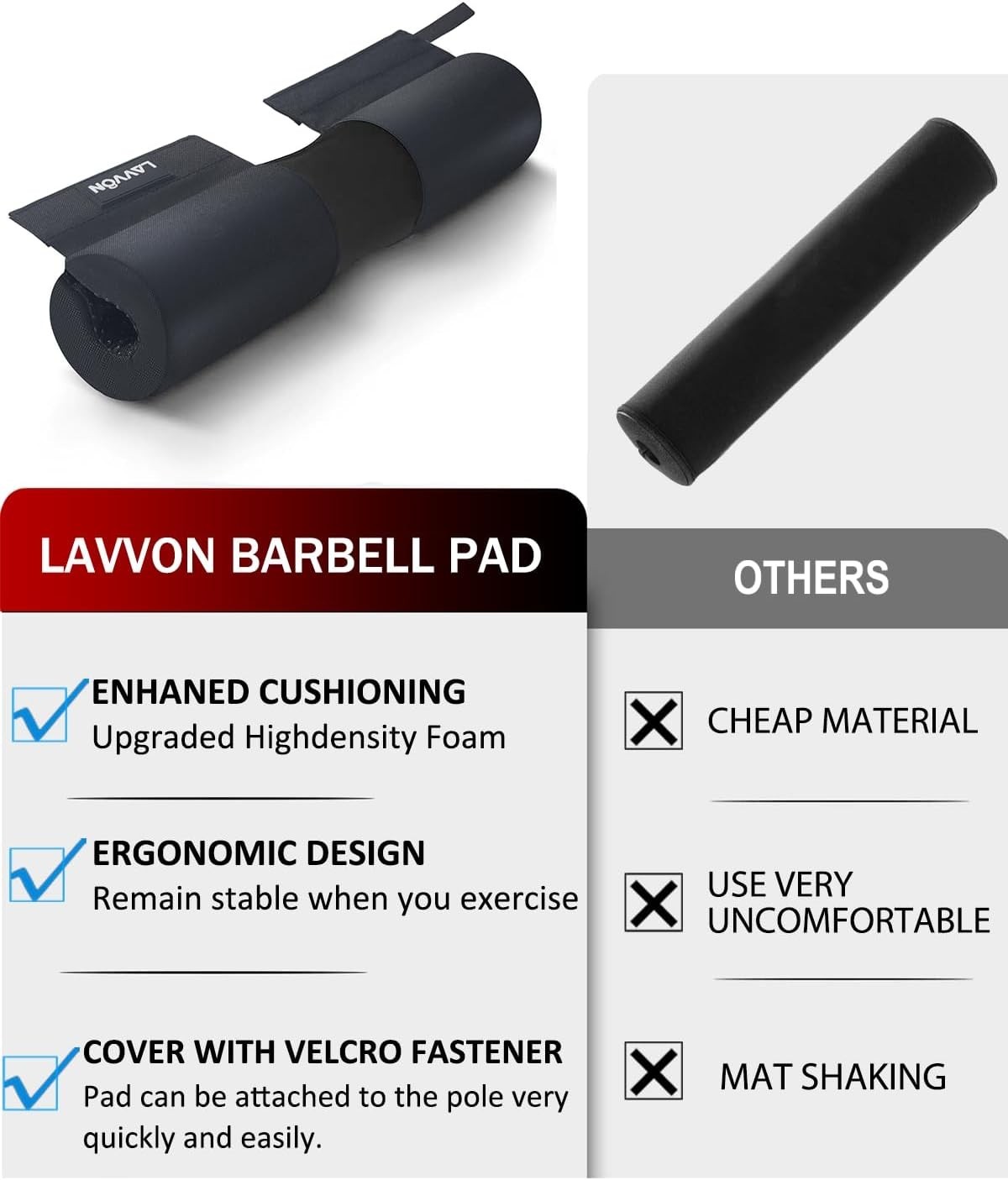 как выглядит Barbell Squat Pad Nylon Padding AntiSlip- Thick Foam Barbell Pad for Squats C... фото