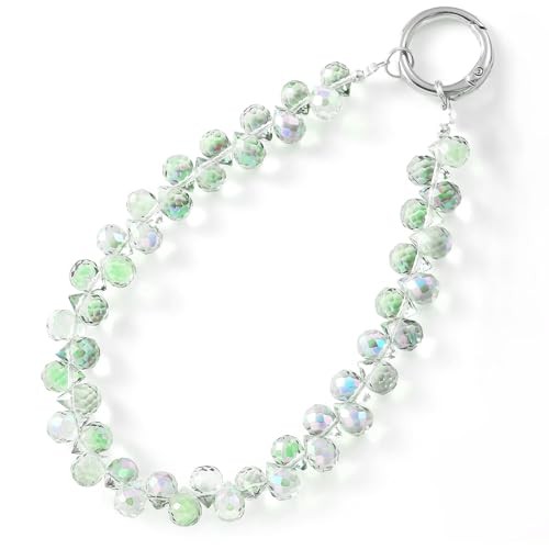 Beaded Phone Wrist Strap, Cellphone Lanyard Chain, Sparkling Wristlet A-green