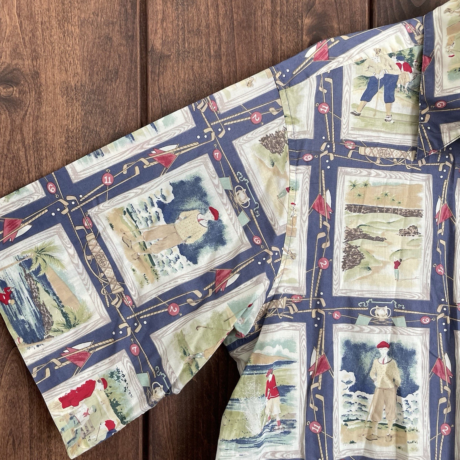 Rare Reyn Spooner Button Shirt Mens Size XL Golf Hawaiian Egyptian Cotton Polo