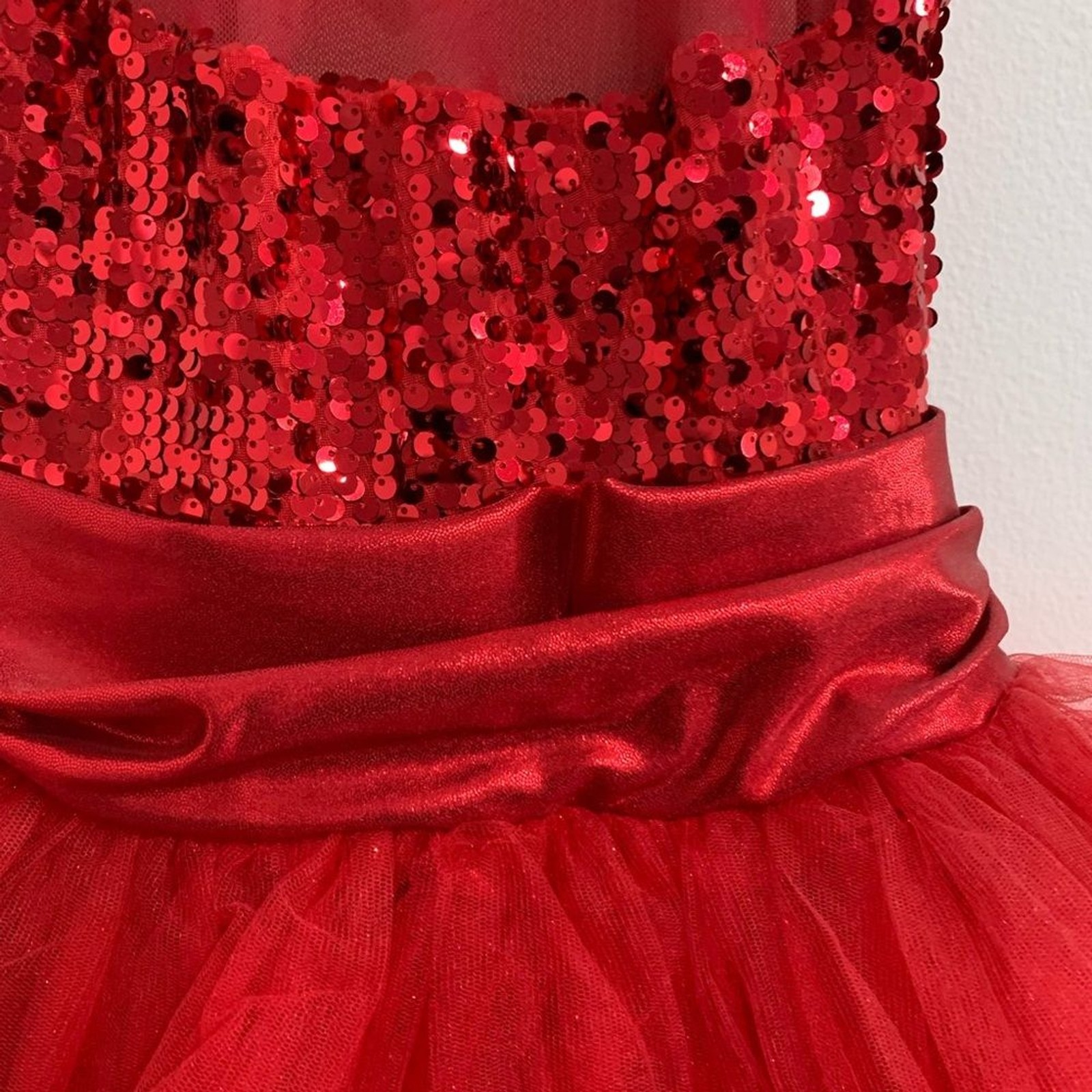 как выглядит Dancewear red sequin tulle dance dress Sparkling Red Tutu Dress Girls Size MC фото