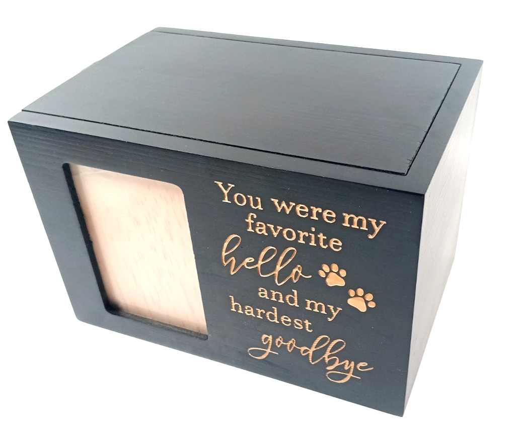 Pet Urns for Dog or Cat Ashes Wooden Cremation Photo Black Inner Foam Padding