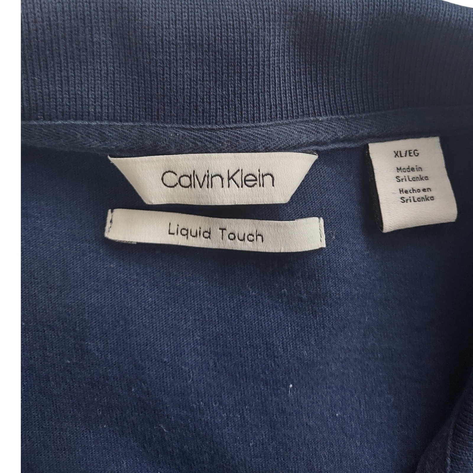 Calvin Klein Polo Shirt Mens XL Blue Liquid Touch Colorblock Cotton Short Sleeve