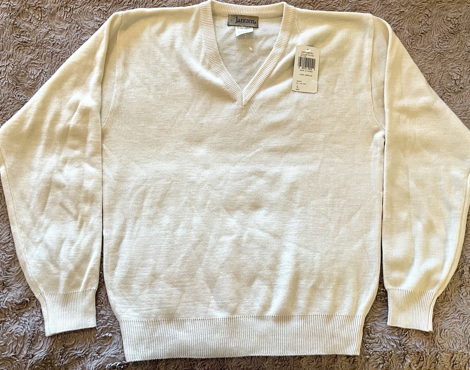 JANTZEN Vintage Lightweight Acrylic V-Neck Sweater L Ivory NEW NWT