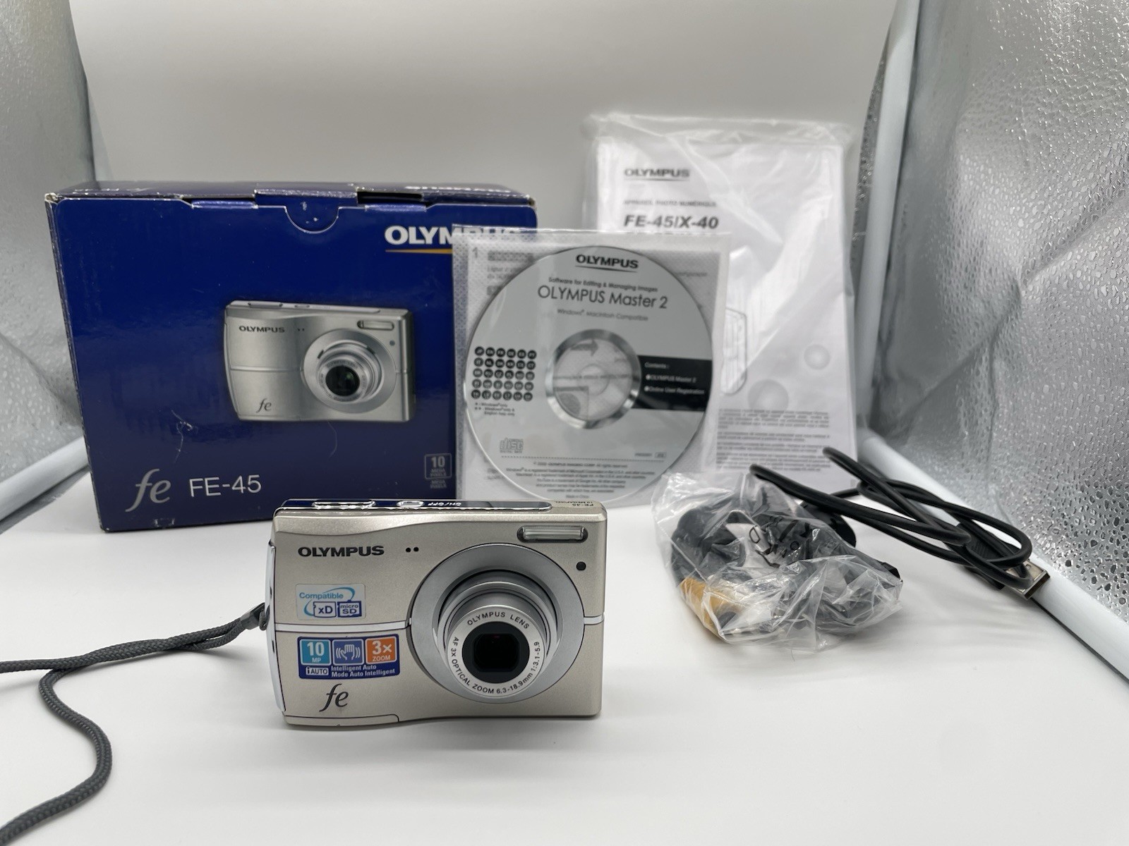 Olympus FE FE-45 10.0MP Digital Camera With Box And Accessories - Silver Tested