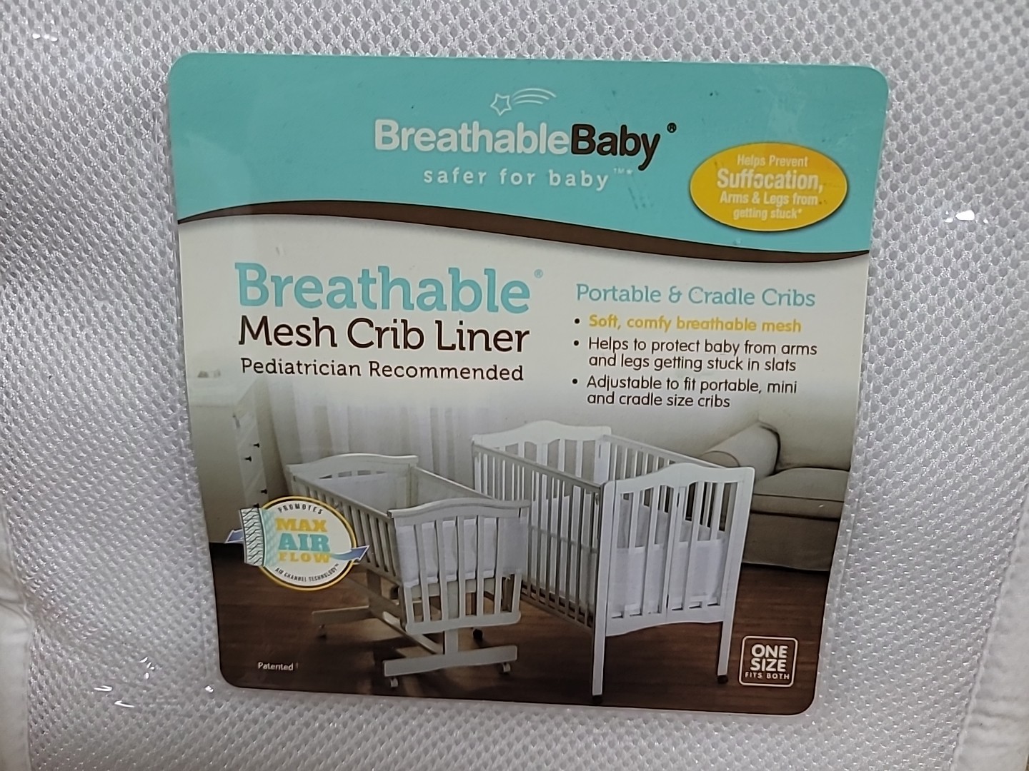 как выглядит BreathableBaby Classic Breathable Mesh Crib Liner For Mini Or Portable Cribs фото