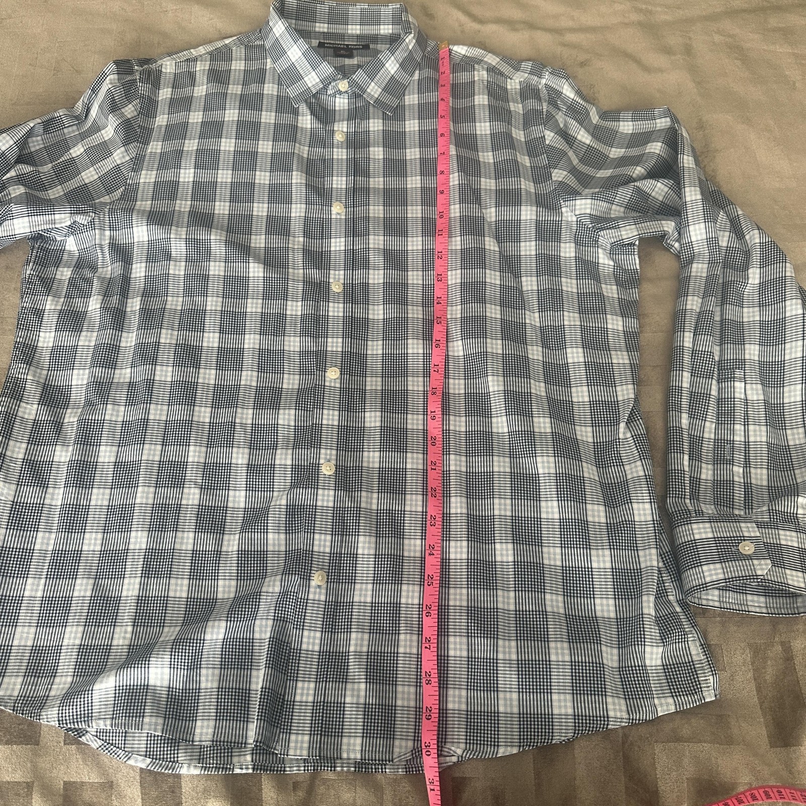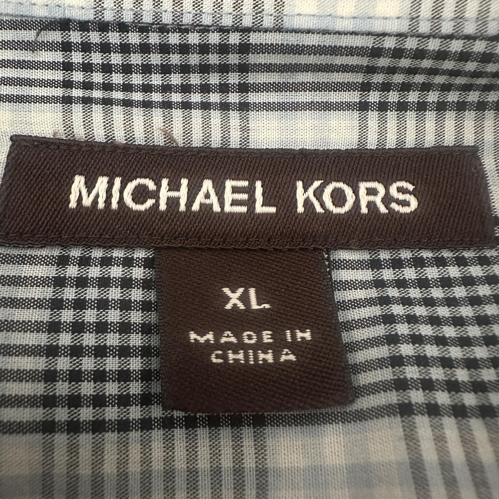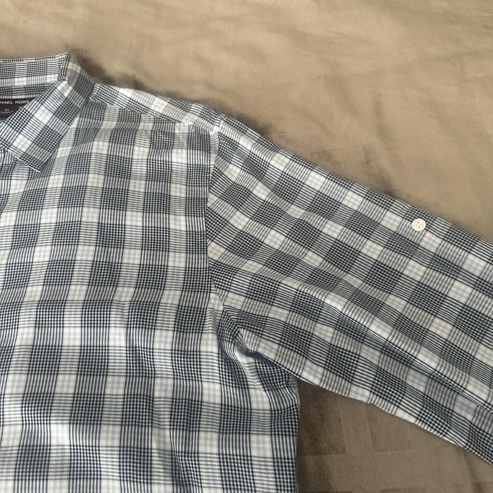 Michael Kors Shirt Mens XL Blue Check Plaid Dress LongSleeve Button Front Cotton