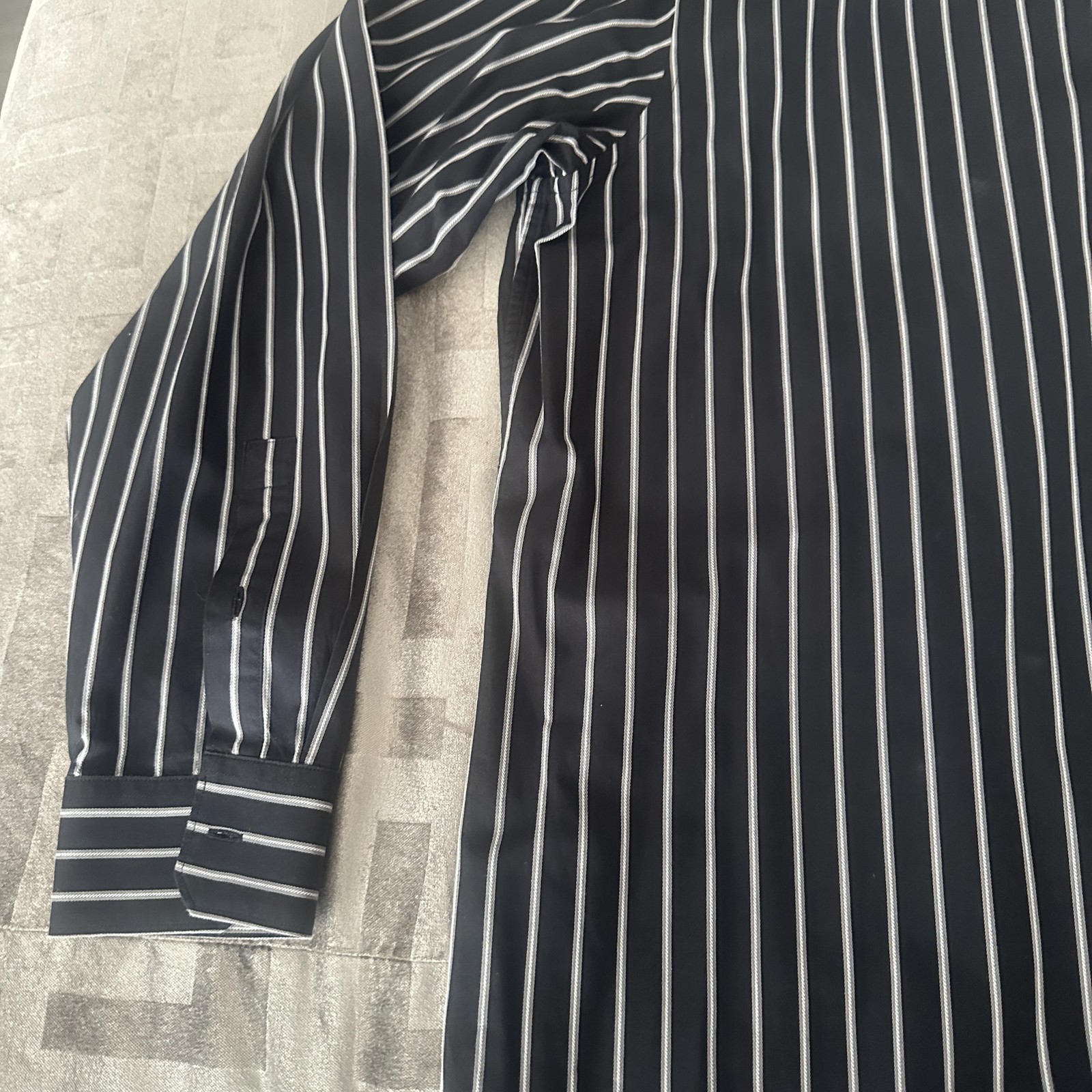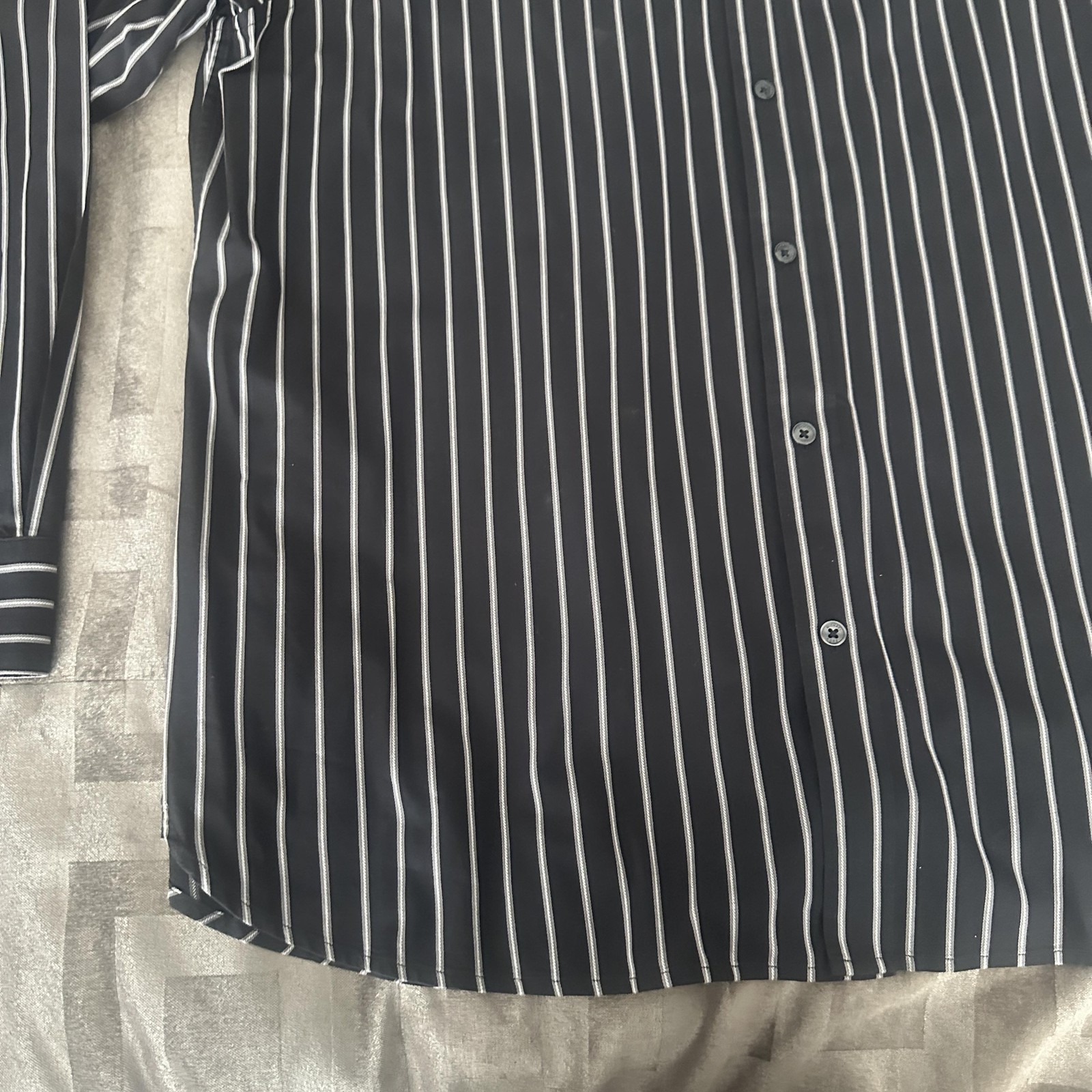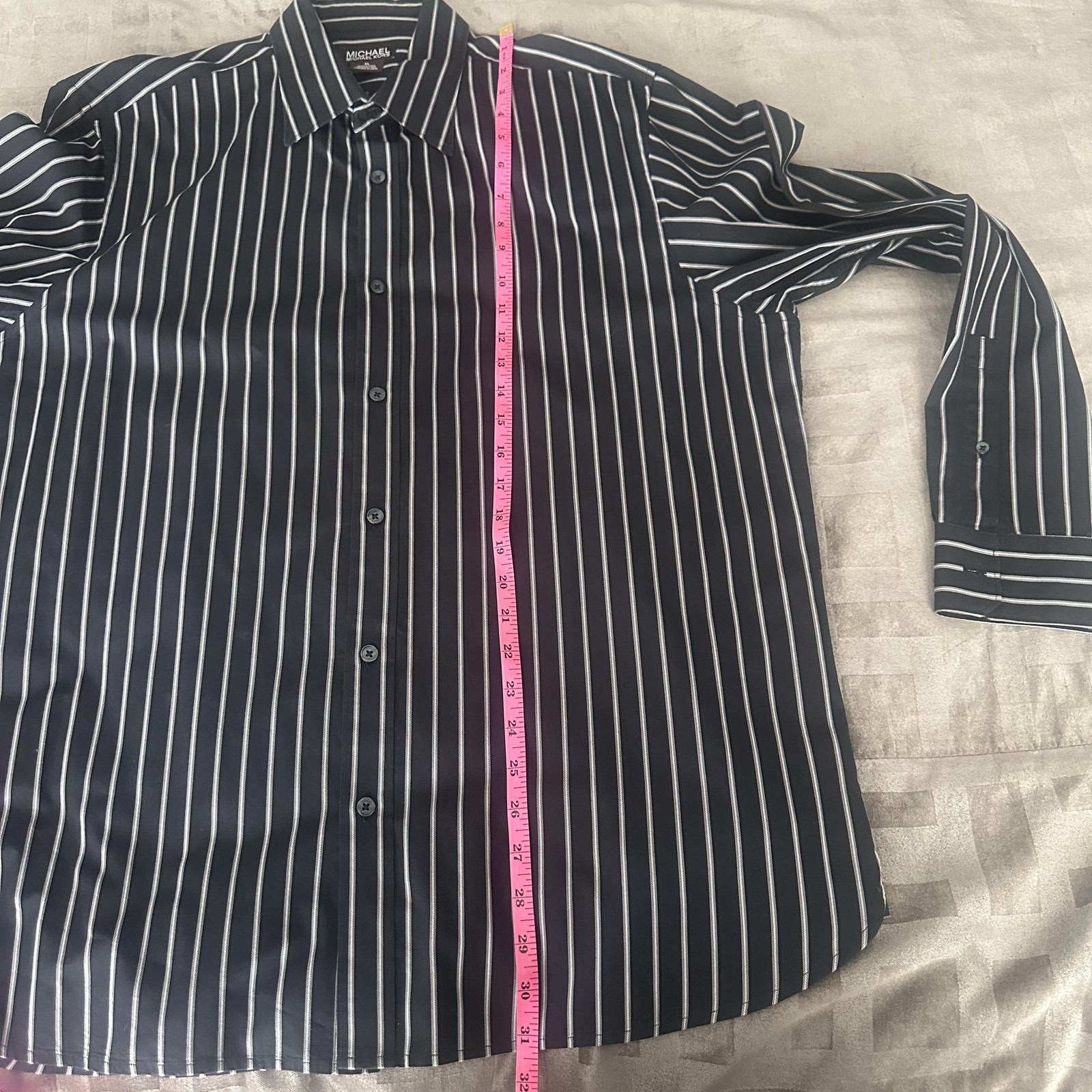 как выглядит Michael Michael Kors Shirt Mens XL Black Stripe Dress Long Sleeve Button Front фото