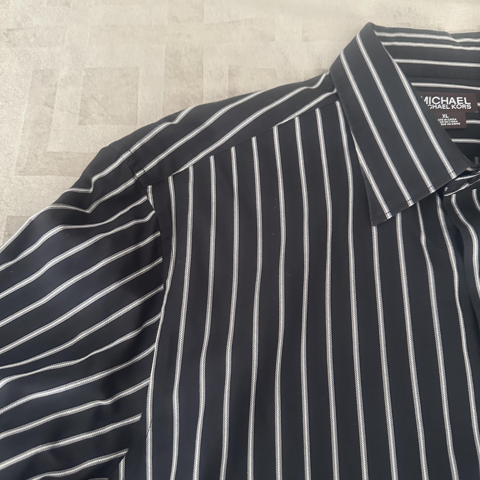 Michael Michael Kors Shirt Mens XL Black Stripe Dress Long Sleeve Button Front