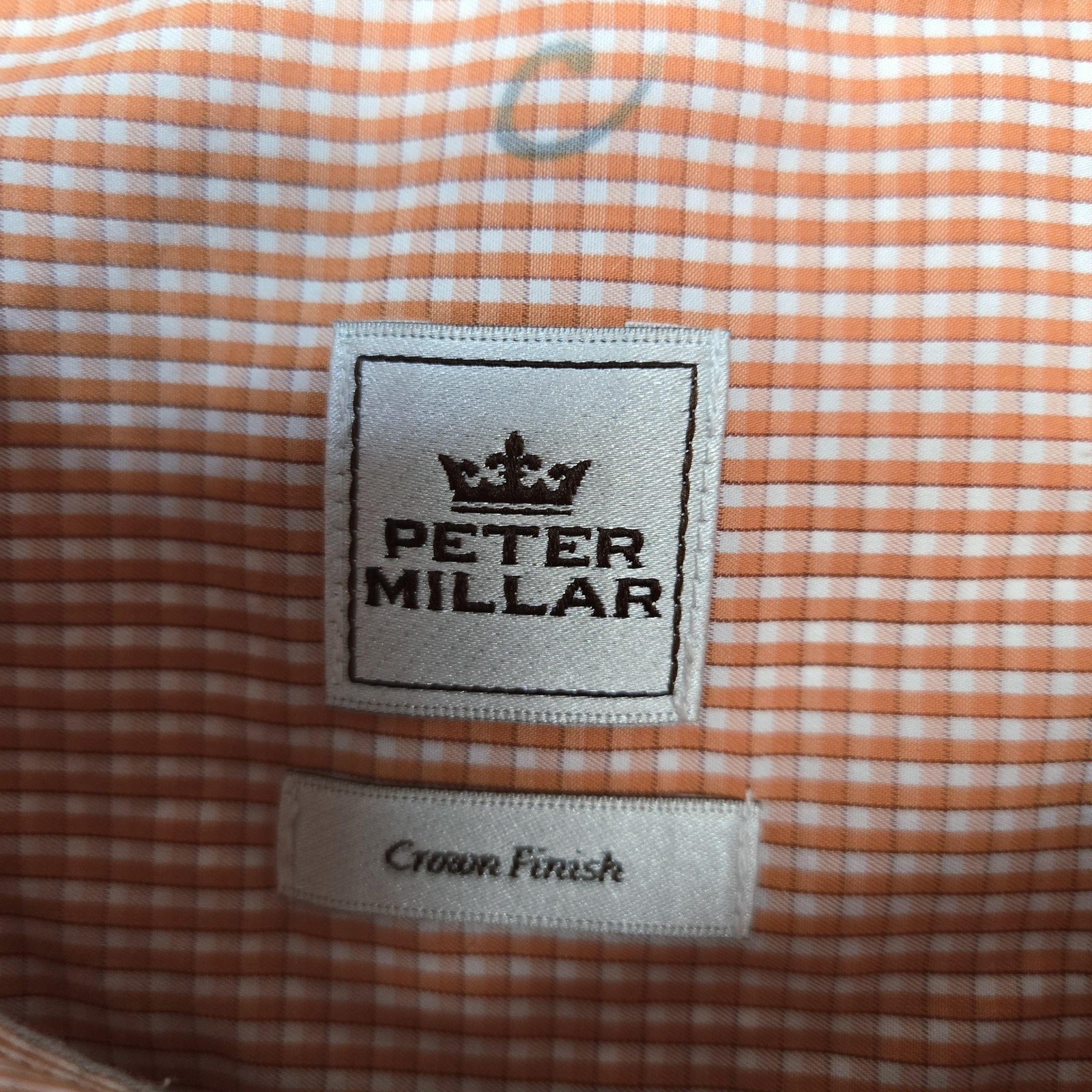 как выглядит Peter Millar Shirt Mens L Orange Check Long Sleeve Button Up Cotton Casual фото