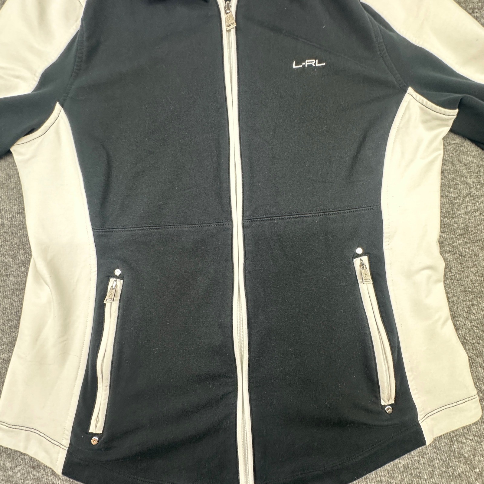 как выглядит LRL Lauren Active Ralph Lauren Black White Zip Up Track Jacket Womens Size L фото