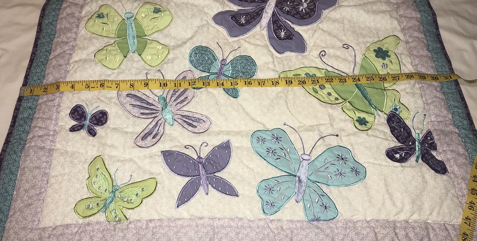 как выглядит NOJO BABY QUILT BUTTERFLIES SET 4PC: 1 QUILT 2 WINDOW VALANCES 1 DIAPER STACKER фото