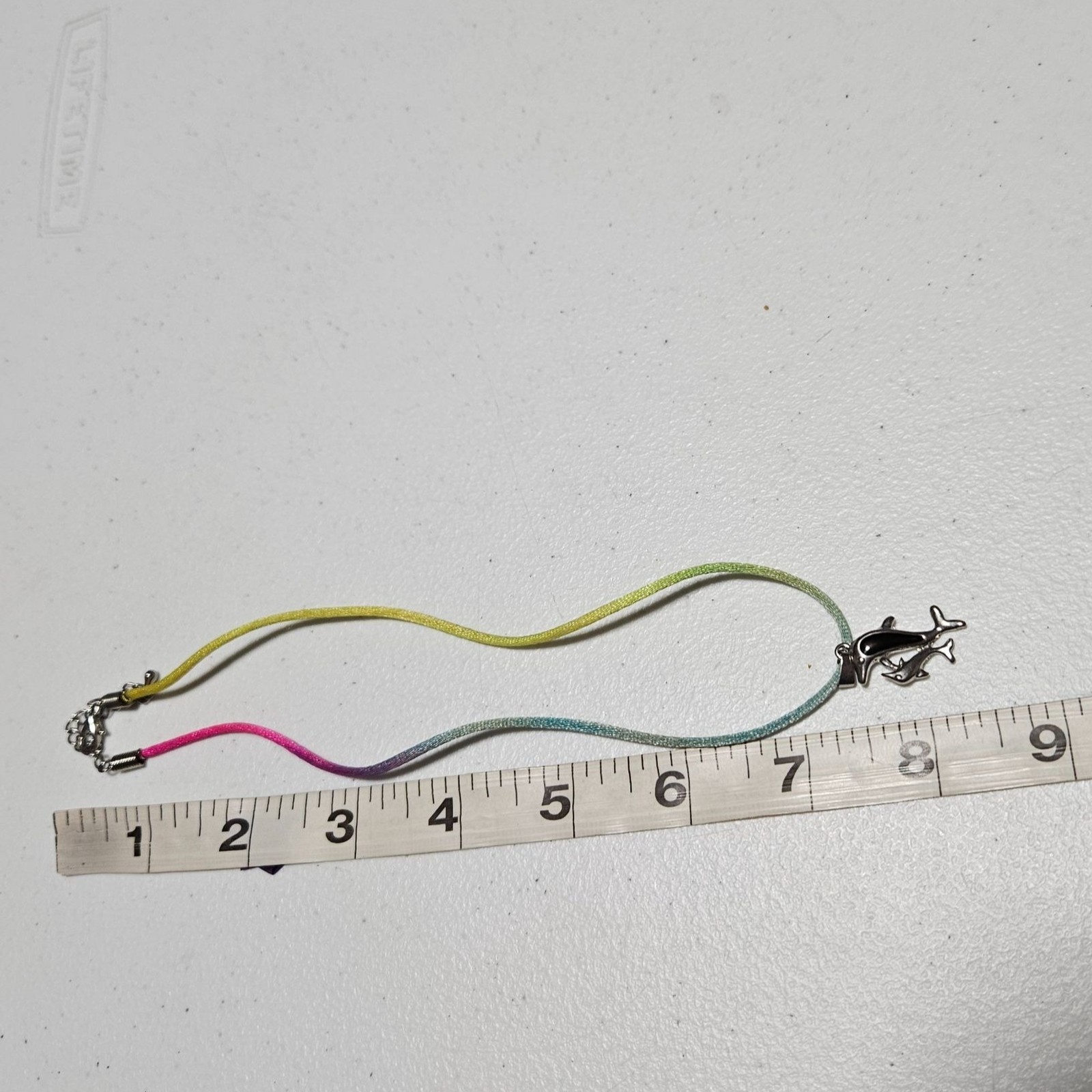 как выглядит Double Dolphin Silver Tone Pendant Necklace Rainbow Cord Girls Costume Jewelry фото