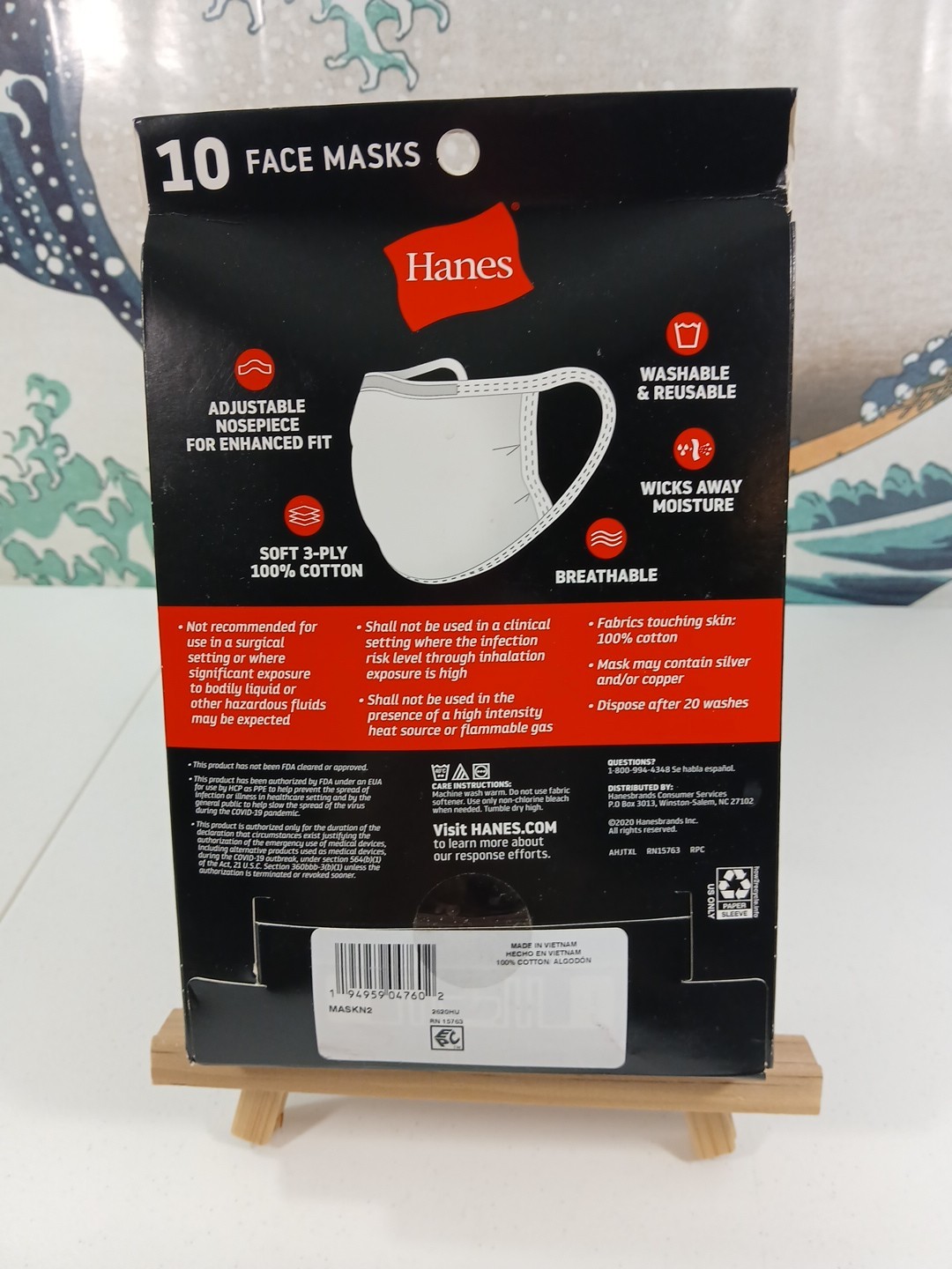 Hanes Face Mask 10 Pack 100 Cotton Washable Reusable White 10 Masks