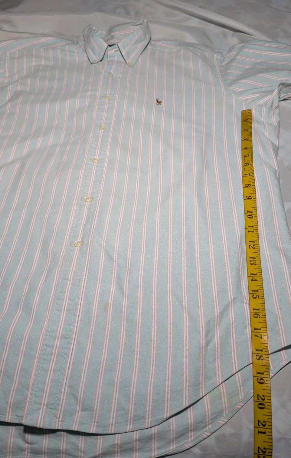 как выглядит RALPH LAUREN Yarmouth Green Pink STRIPED Button Down Dress Shirt Mens 16.5 34 фото