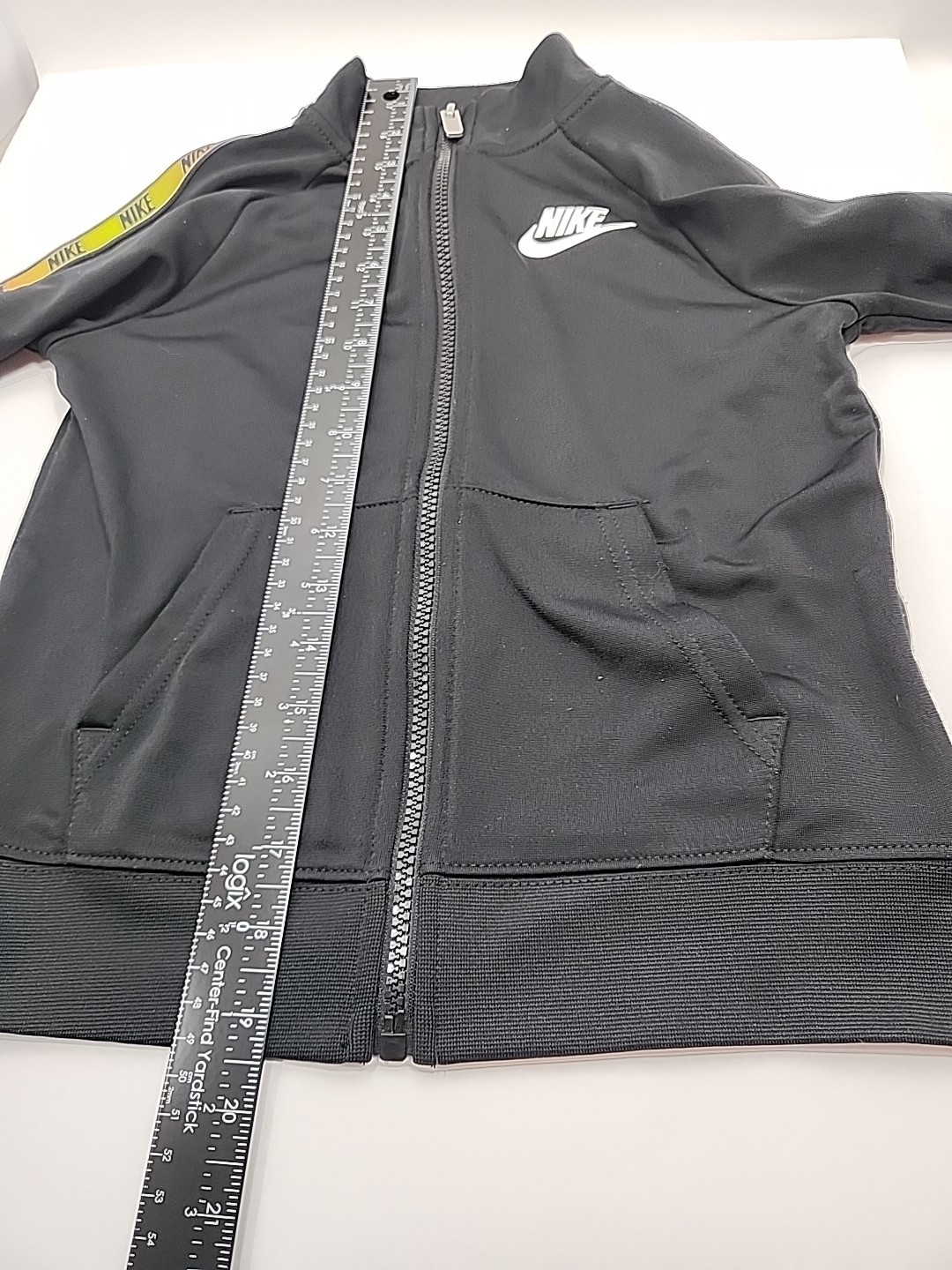 как выглядит Nike Little Kids Full Zip Track Jacket Black Gradient Logo Tape Size 7 6-7 Yrs фото