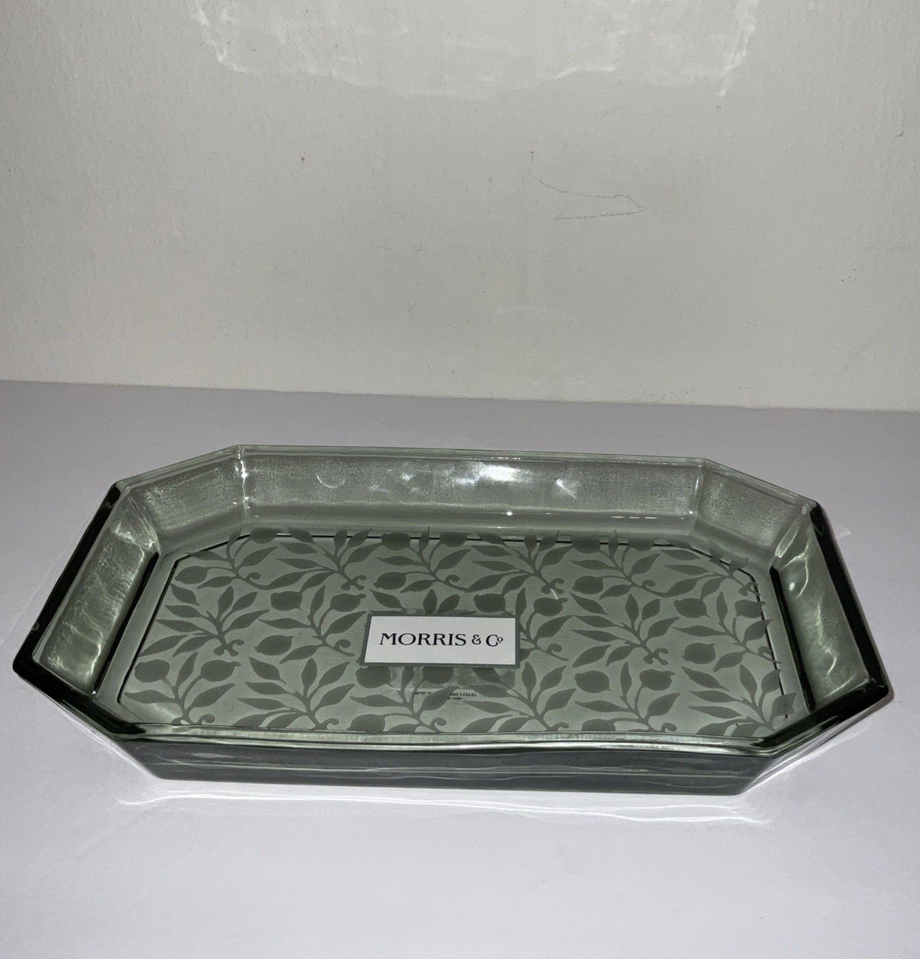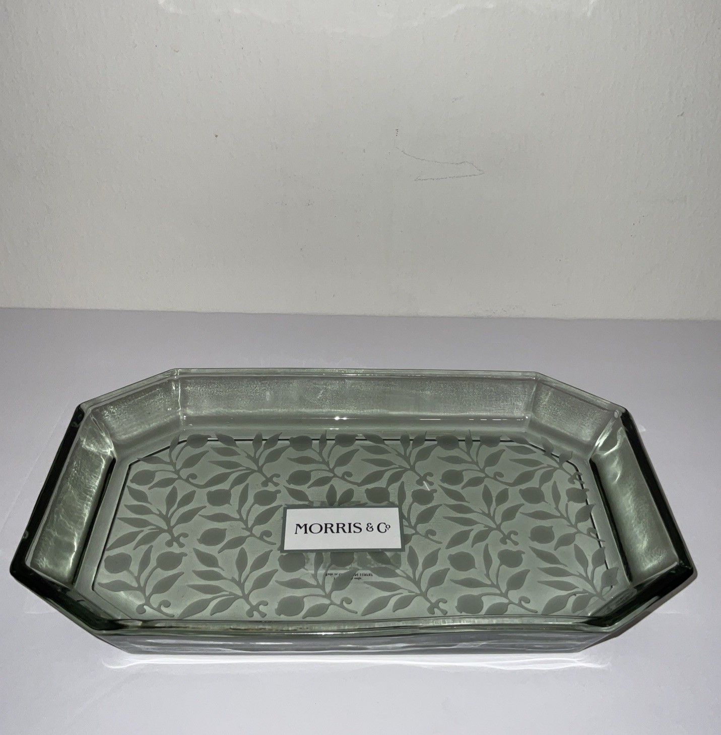 MORRIS Co. GREEN GLASS POMEGRANATE HEXAGONAL 10x6 TRAY BATHROOM VANITY NWT